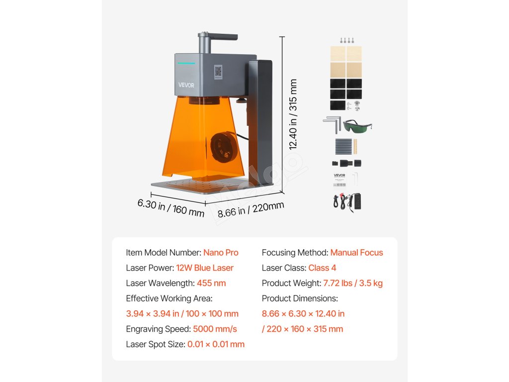 Prenosný laserový gravírovač 12W, 5000 mm/s, presnosť 0,01×0,01 mm