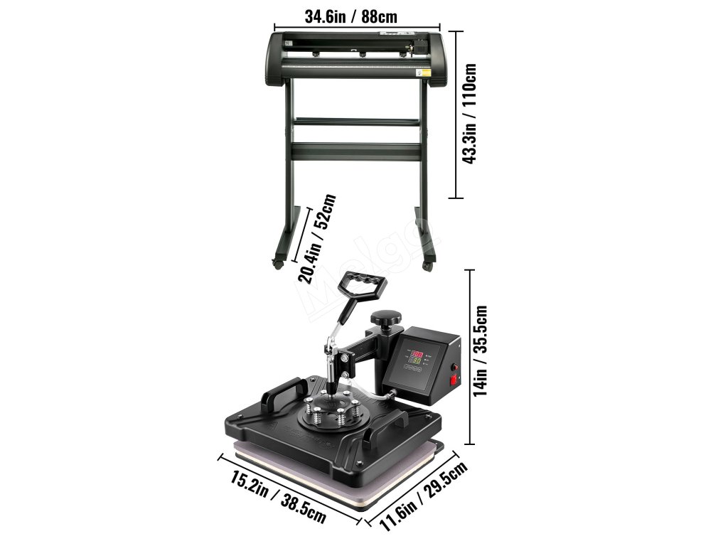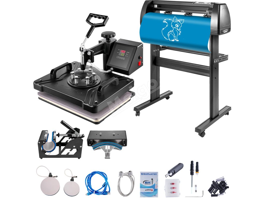 Táto kompletná súprava sa skladá z dvoch profesionálnych zariadení, konkrétne z rezačky vinylu a multifunkčného tepelného lisu. 28" rezací plotter vám umožní vyrezať prispôsobené vzory a značky podľa vašich predstáv. tepelný lis 5 v 1 je ideálny na prenos týchto personalizovaných obrázkov na tričká, hrnčeky, čiapky atď.