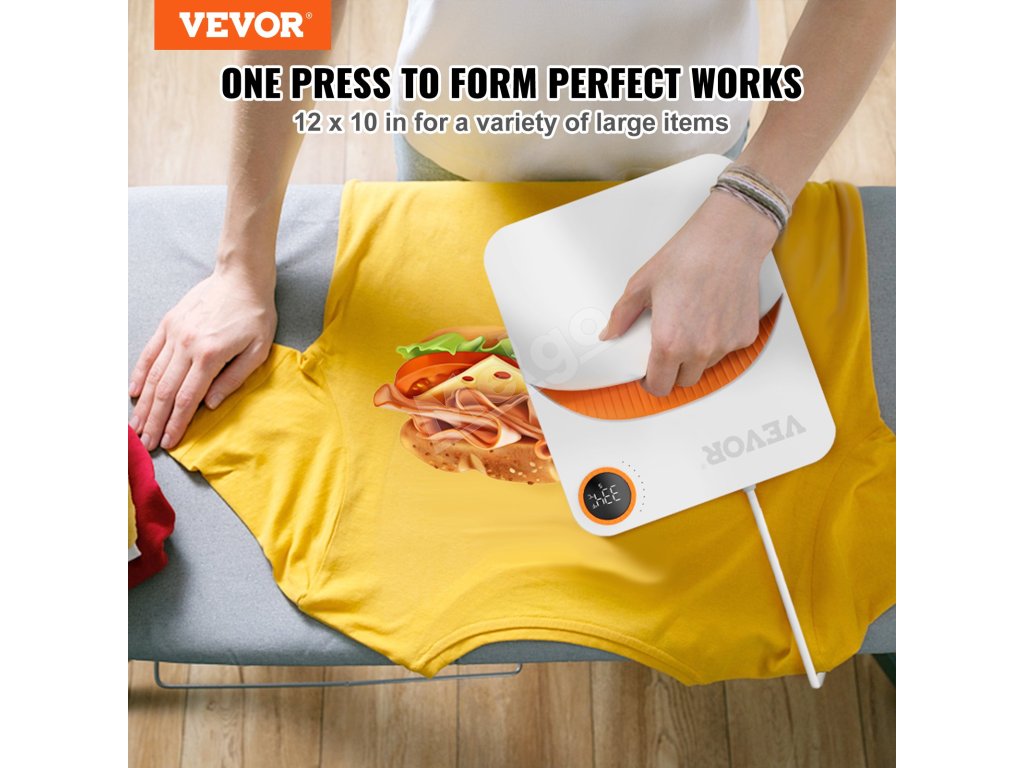 Domáci tepelný stroj VEVOR je tu, aby priniesol teplo! Môže fungovať ako žehlička a lis na prenos tepla, ktorý je rýchlejší a rovnomernejší v zahrievaní ako iné bežné žehličky, pričom si zachováva svoju vynikajúcu praktickosť. Jednoducho stlačte a objavte svoju kreatívnu cestu.