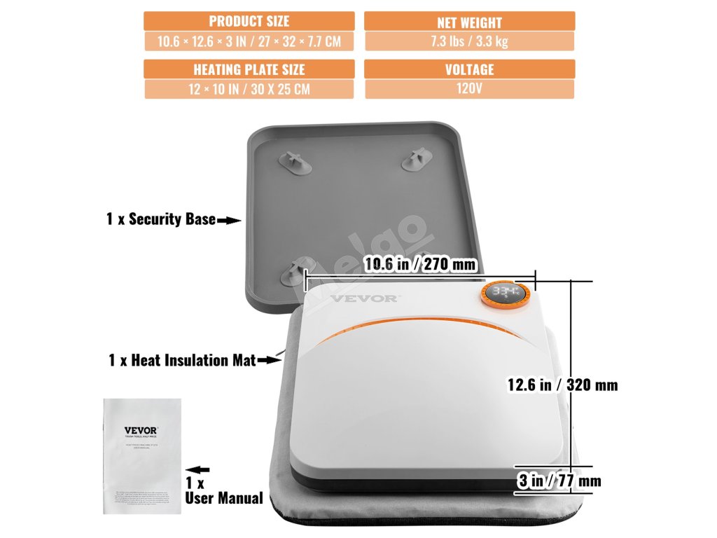 | Veľkosť vykurovacej dosky | 12 × 10 palcov / 30 x 25 cm |