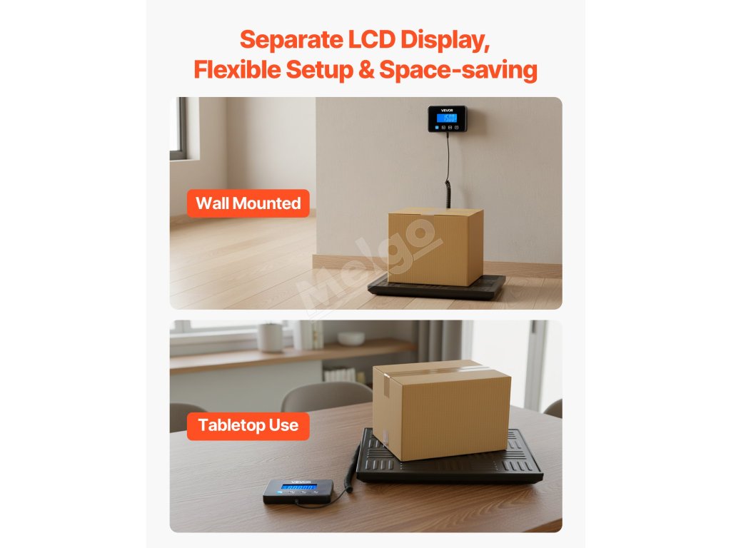Odpoveď: Áno, odnímateľný displej možno pripevniť na stenu alebo umiestniť na plocho, aby sa dal ľahko prezerať pri vážení objemných predmetov.