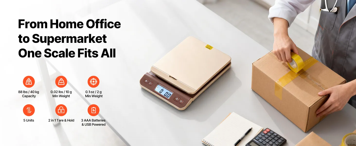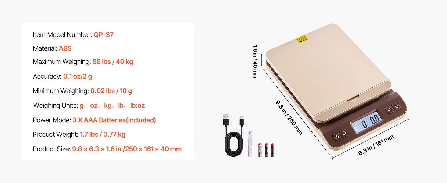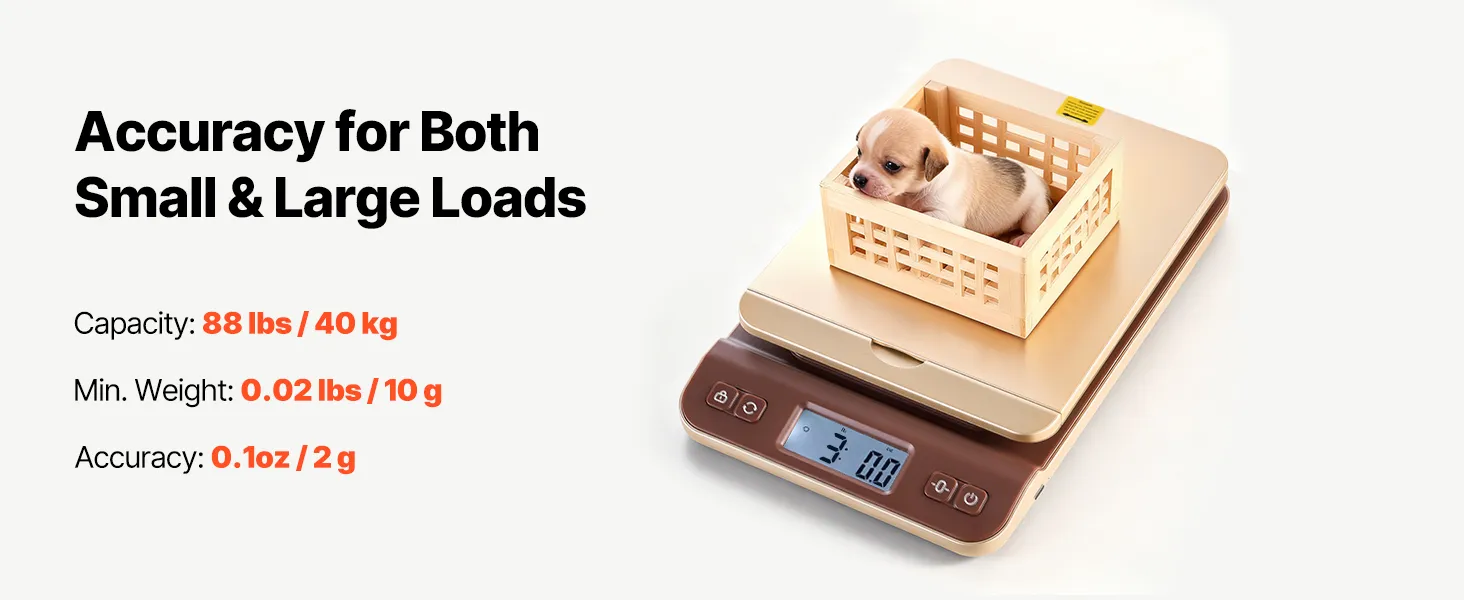 Táto poštová váha si poradí so zásielkami do hmotnosti 88 libier s presnosťou 0,1 unce, takže každé váženie je presné a spoľahlivé pri preprave alebo každodennom používaní.