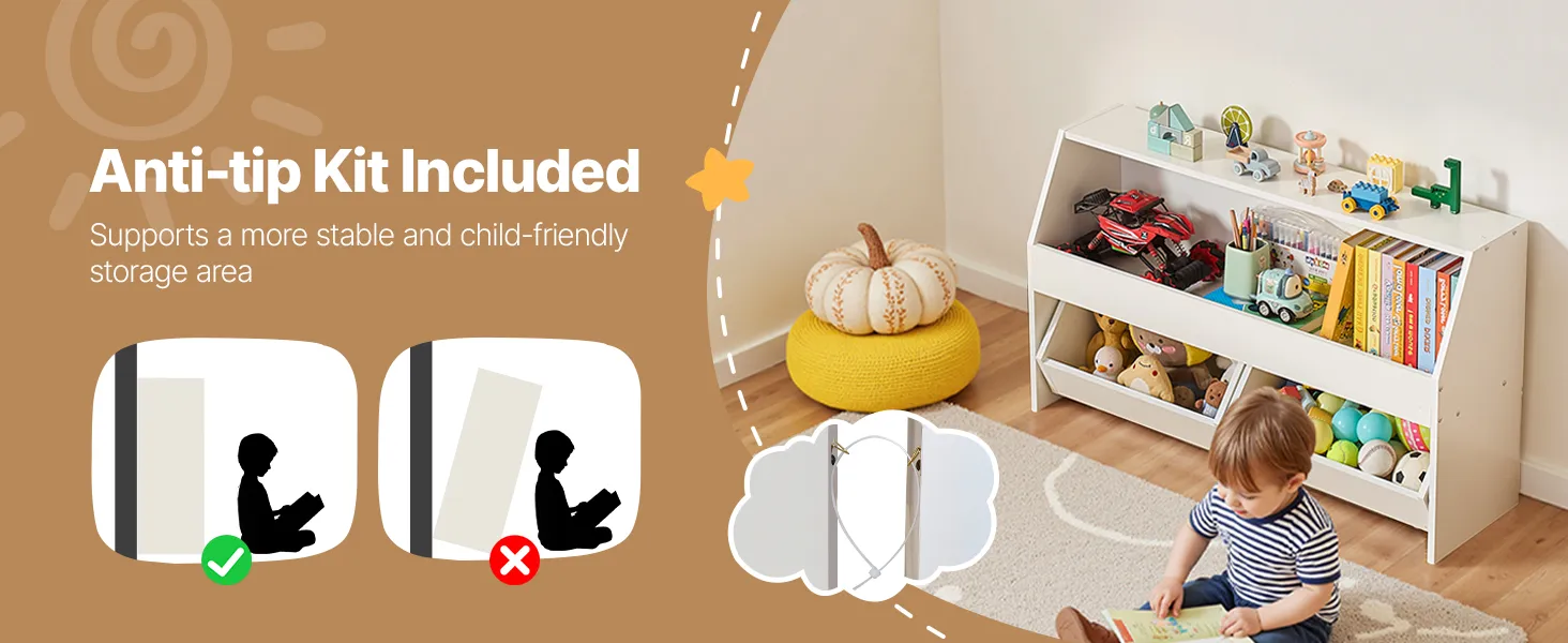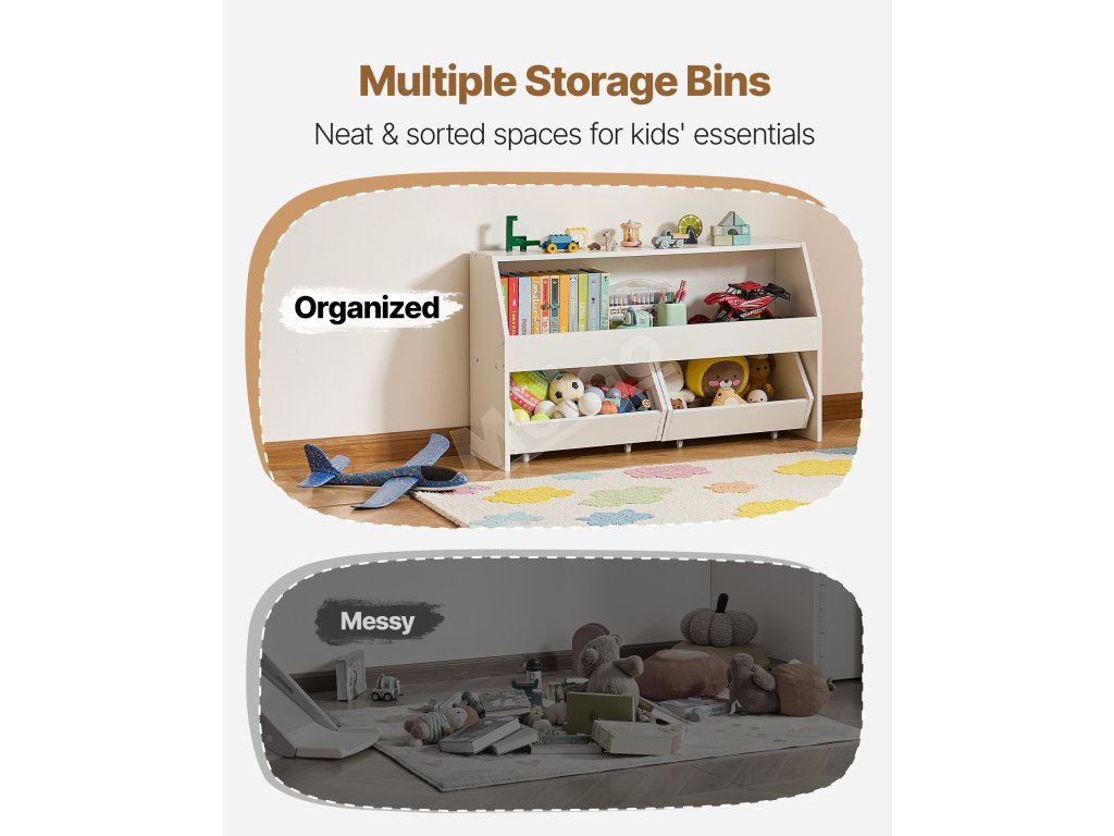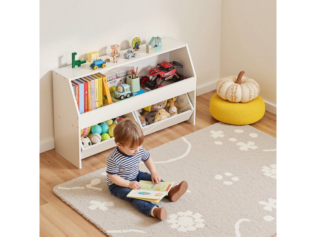 Obsahuje 3 priestranné priehradky na ukladanie hračiek, kníh, oblečenia a ďalších vecí, vďaka ktorým bude váš priestor usporiadaný a bez neporiadku.