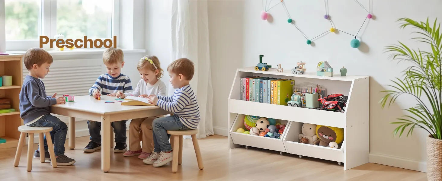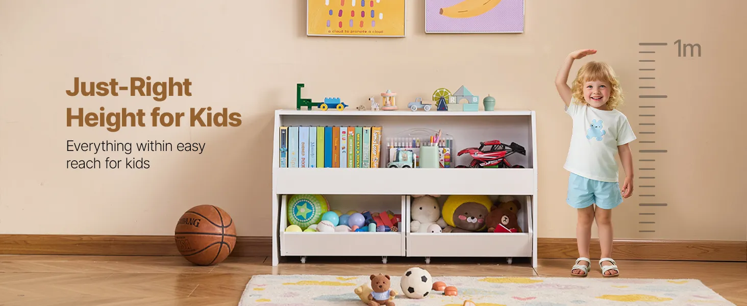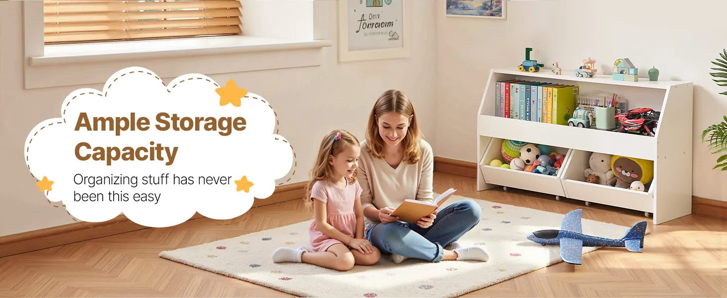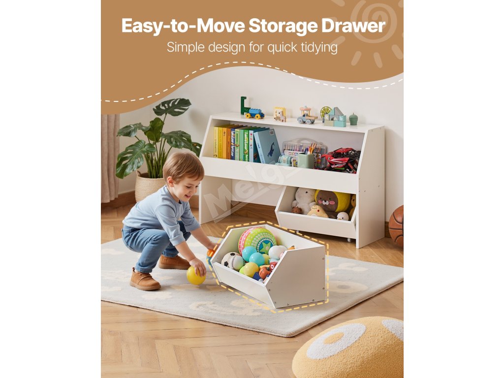 Vybavený kolieskami na ľahkú mobilitu, vďaka ktorým môžete úložný priestor a organizér na hračky bez námahy premiestňovať.