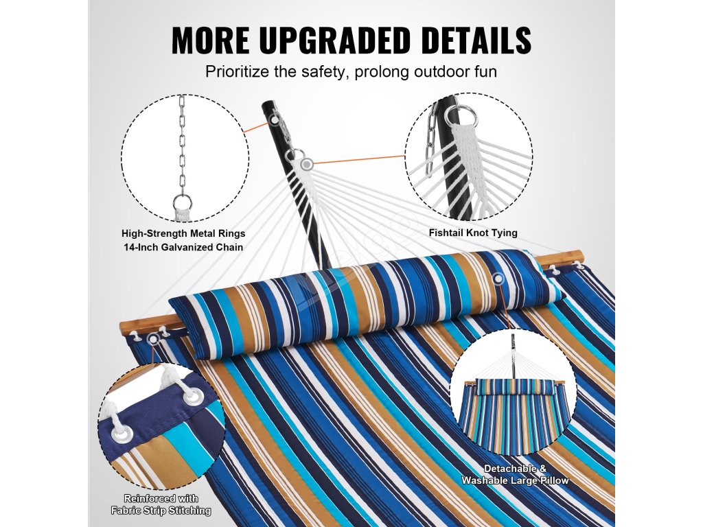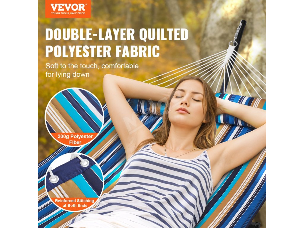 Doprajte si dokonalú relaxáciu vonku s dvojitou prešívanou látkovou hojdacou sieťou so stojanom od VEVOR. Naša hojdacie sieť je vyrobená tak, aby poskytovala trvalý komfort a spoľahlivosť. Je vyrobená z 200 g prešívanej bavlny, má zosilnené konce, stabilný oceľový stojan, rozpínacie tyče z tvrdého dreva a ručne tkané laná, ktoré poskytujú nekonečnú zábavu vonku.
