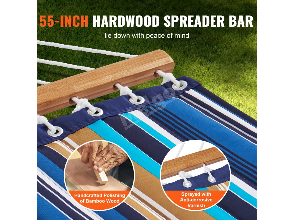 Rozpínacie tyče z tvrdého dreva s rozmermi 55 palcov zabezpečujú rovnomerné rozloženie hmotnosti, udržujú stabilitu a zabraňujú prevráteniu. Sú starostlivo vyleštené a lakované pre dlhú životnosť. Okrem toho je každý otvor na lano vyhladený, aby sa minimalizovalo trenie a predĺžila životnosť lana.