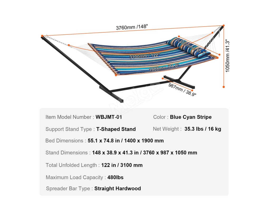 Zabezpečenie stability a bezpečnosti: Kovové krúžky, rybie chvostové uzly a dva 14-palcové pozinkované reťaze zabezpečujú váš relax, zatiaľ čo odnímateľný mäkký vankúš pridáva pohodlie. Kovové háčiky, práškovo lakovaný oceľový stojan a spodné ochranné kryty zabezpečujú odolnosť a pohodlie.