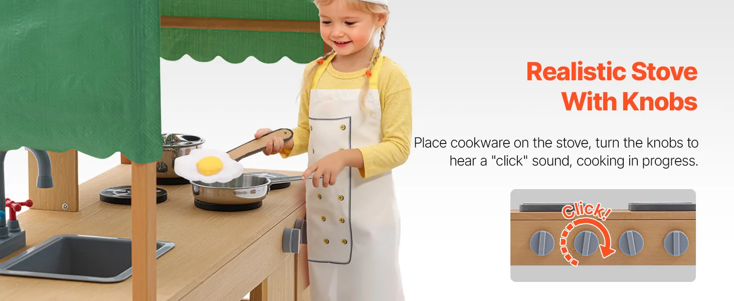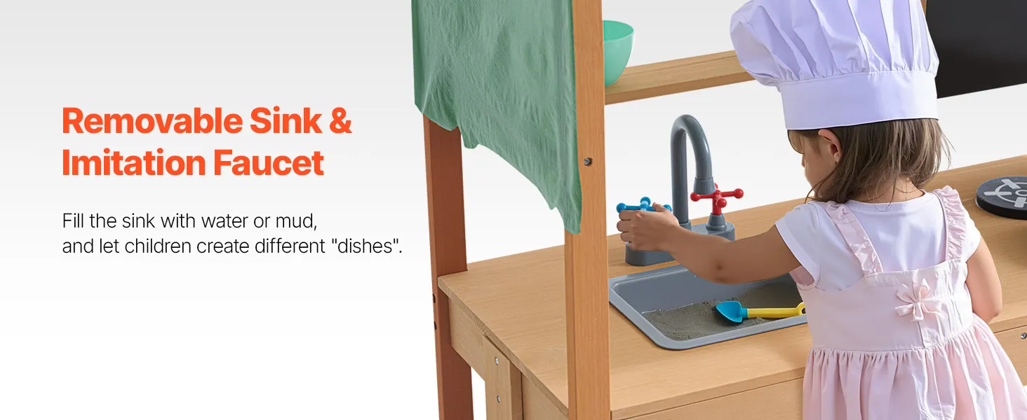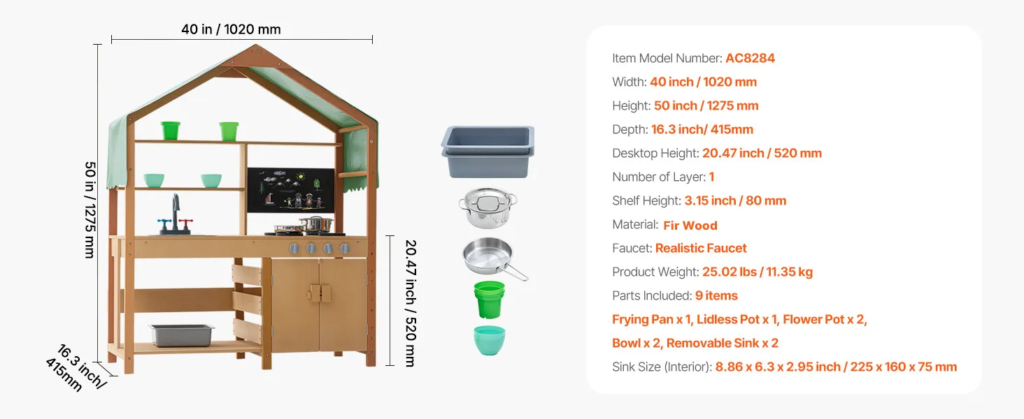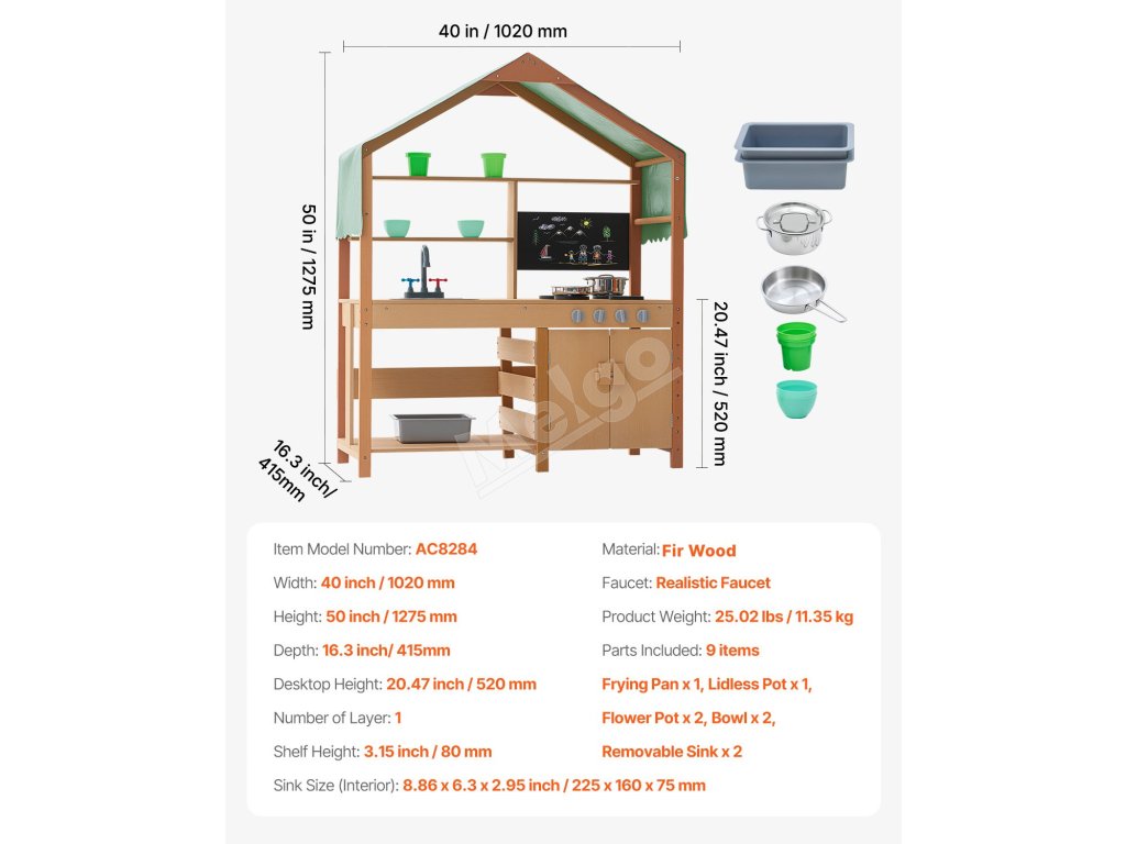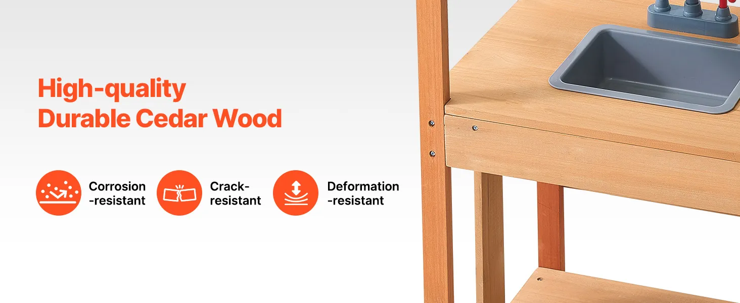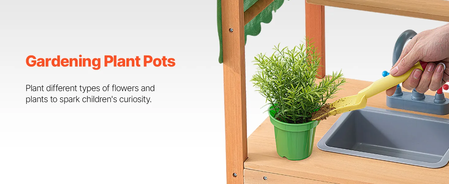 Táto kuchynka pre batoľatá je ošetrená vonkajšou farbou odolnou voči vode a korózii a poskytuje deťom tienistý priestor na hranie. Je ideálna na použitie v záhradách, na dvoroch a trávnikoch.