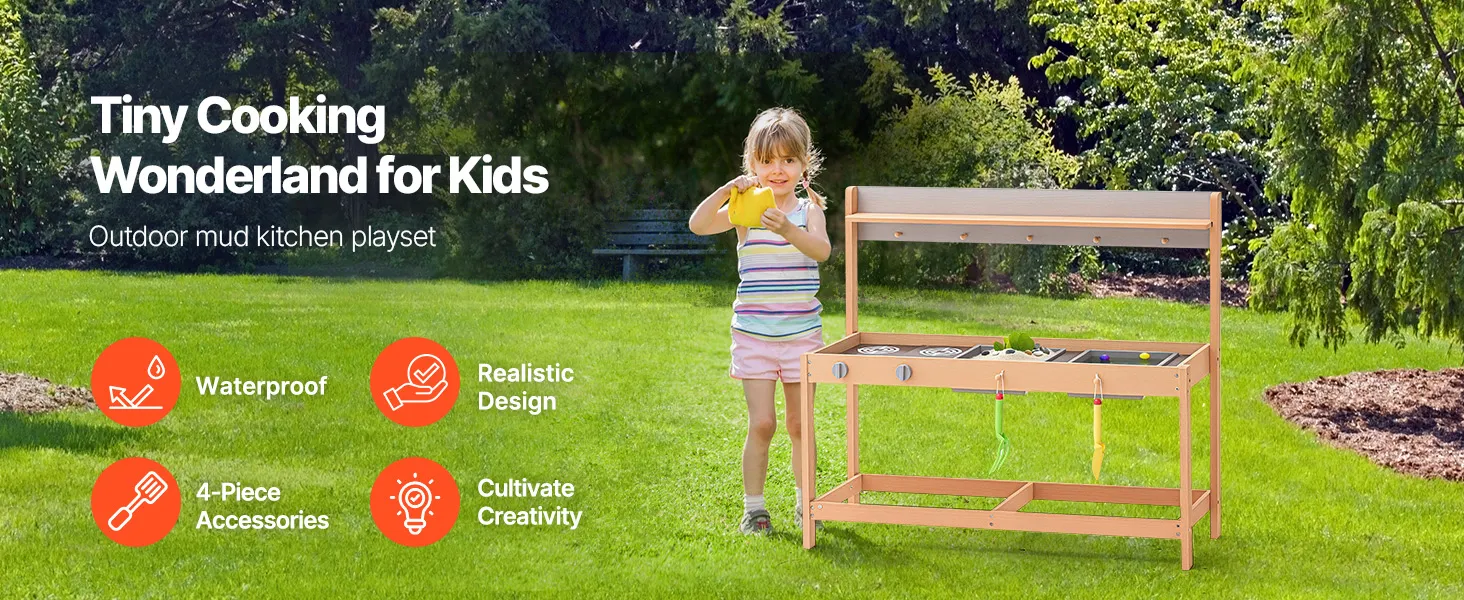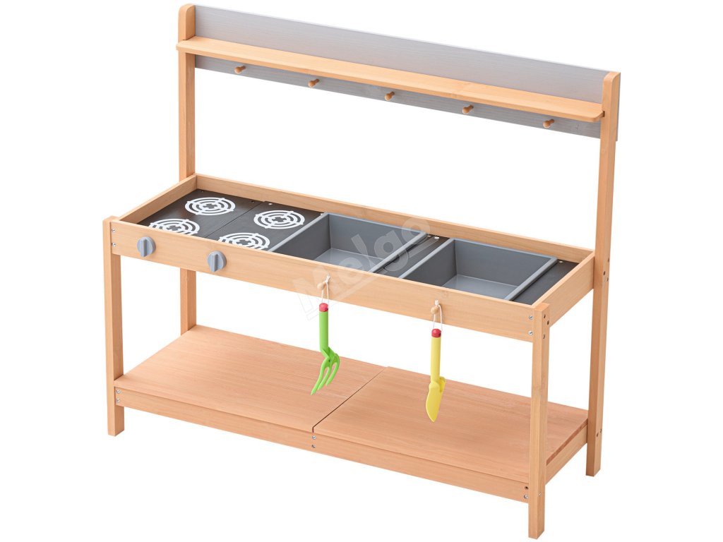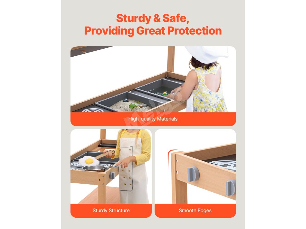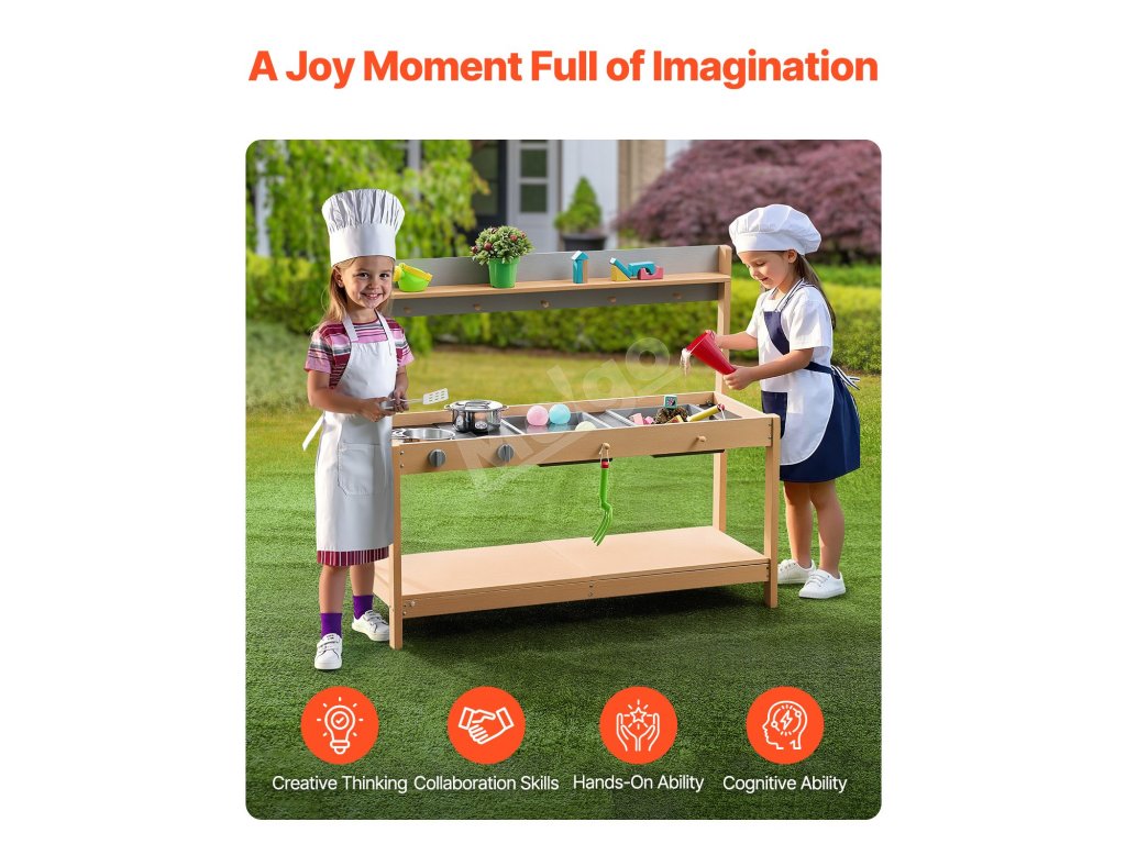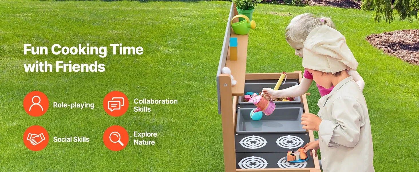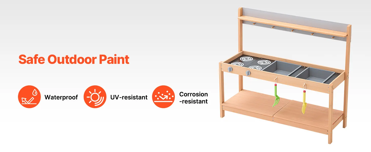 Táto nápaditá kuchynka na hranie pre batoľatá je ošetrená vonkajšou farbou, ktorá je odolná voči vode a korózii, takže je ideálna do vonkajšieho prostredia, ako sú záhrady, dvory a trávniky.
