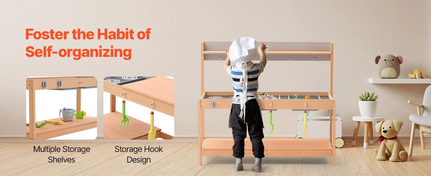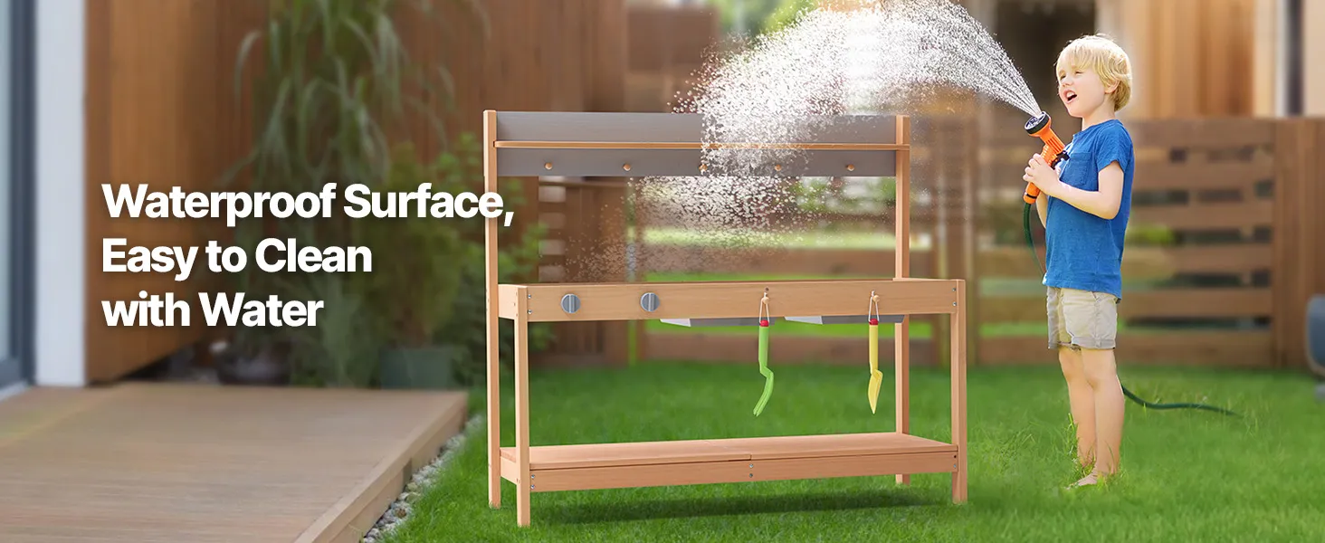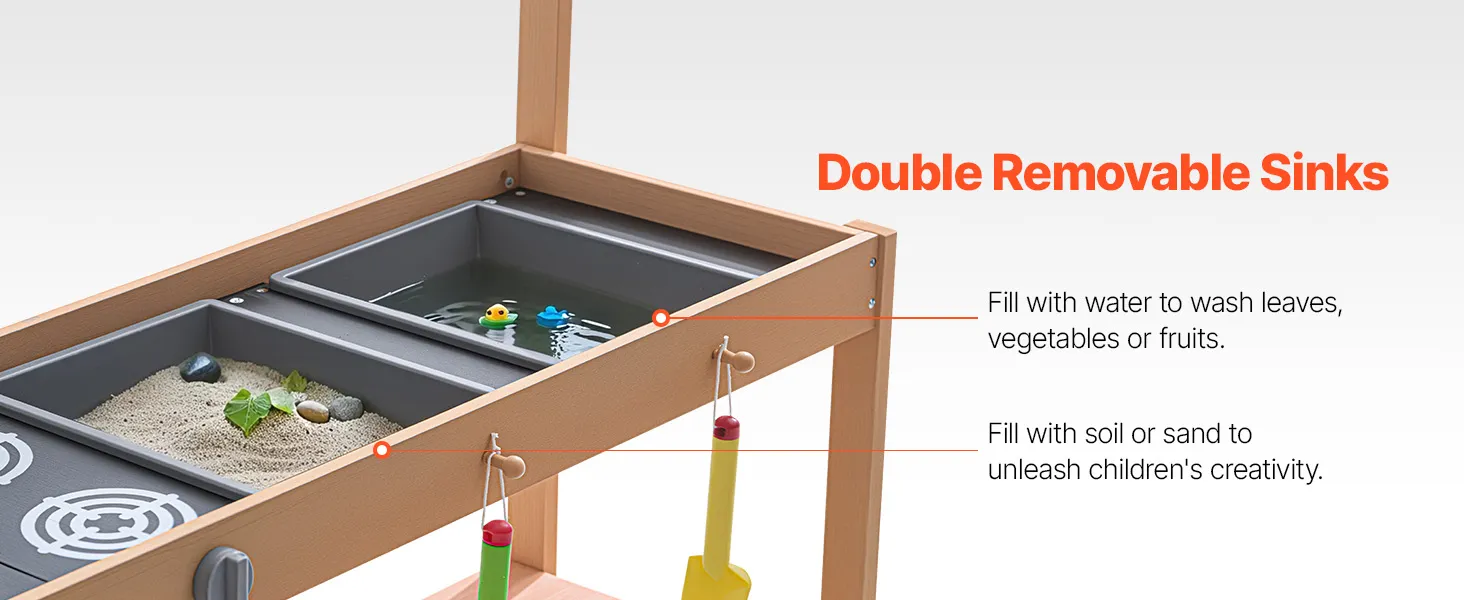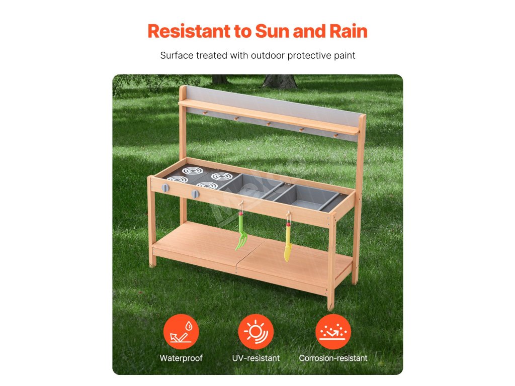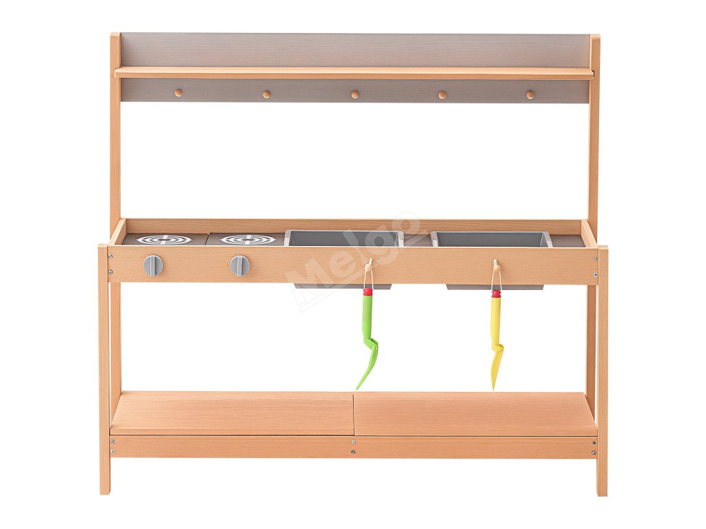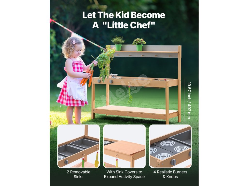 Táto nápaditá kuchynka na hranie pre batoľatá je ošetrená vonkajšou farbou, ktorá je odolná voči vode a korózii, takže je ideálna do vonkajšieho prostredia, ako sú záhrady, dvory a trávniky.