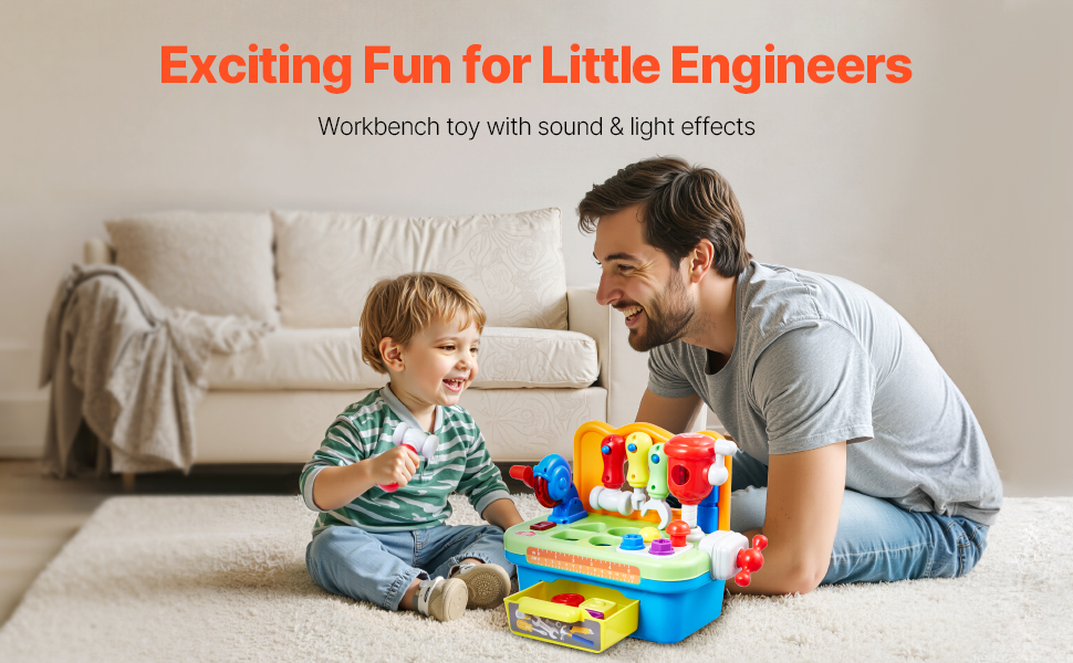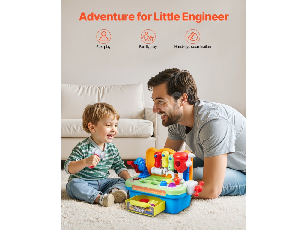 Sledujte, ako vaše dieťa nadchne hračkárska vŕtačka, hračkárska motorová píla a svorka pracovného stola - každá s parádnymi zvukovými a svetelnými efektmi! S hračkárskym skrutkovačom, kľúčom a kladivom a zodpovedajúcimi blokmi pre nekonečnú zábavu je to dobrodružstvo na hranie.