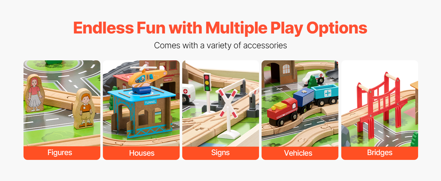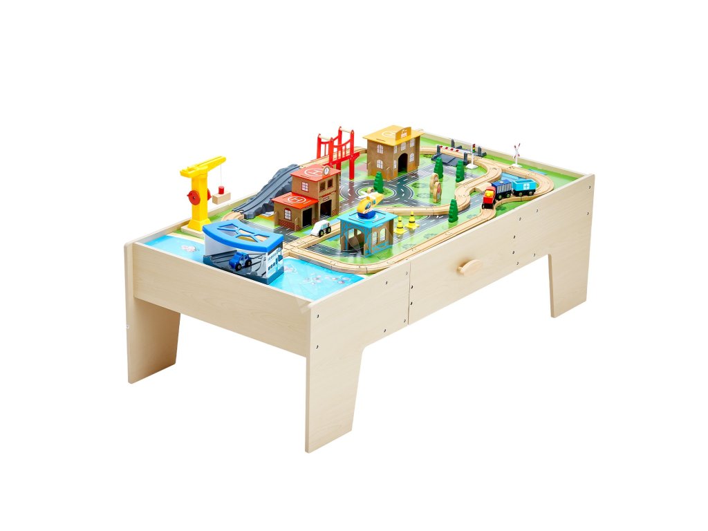 Tento detský vláčikový stôl obsahuje príslušenstvo pre reálne scenáre, ako je nakladanie a preprava nákladu pomocou vlakov a vrtuľníkov. Viacero hracích plôch pomáha deťom zlepšovať sociálne a komunikačné zručnosti pri hre s kamarátmi.