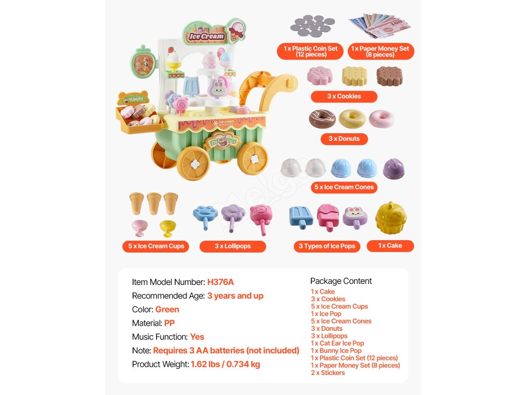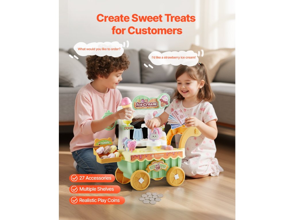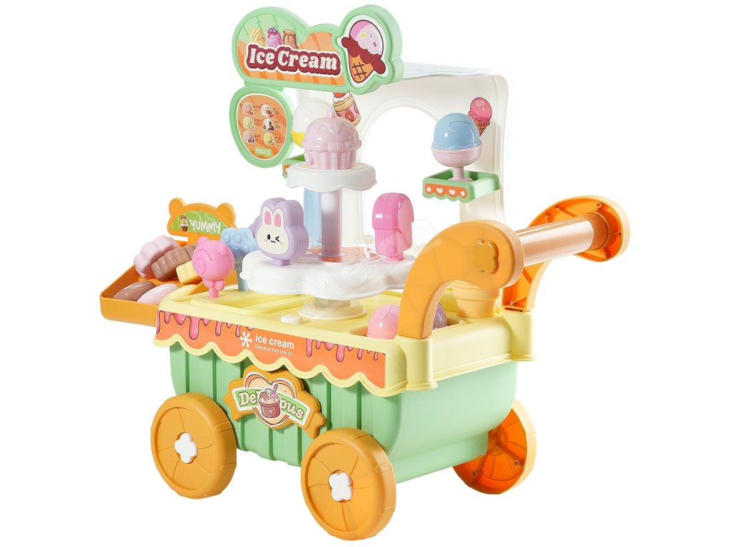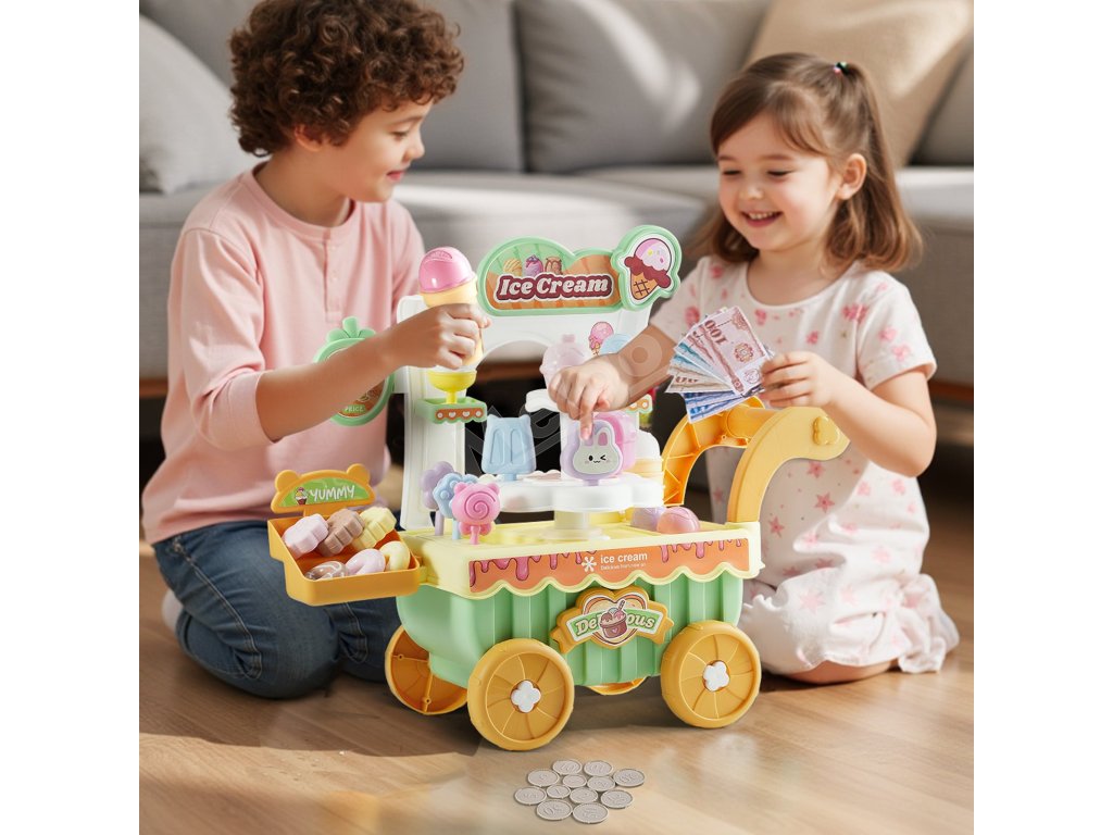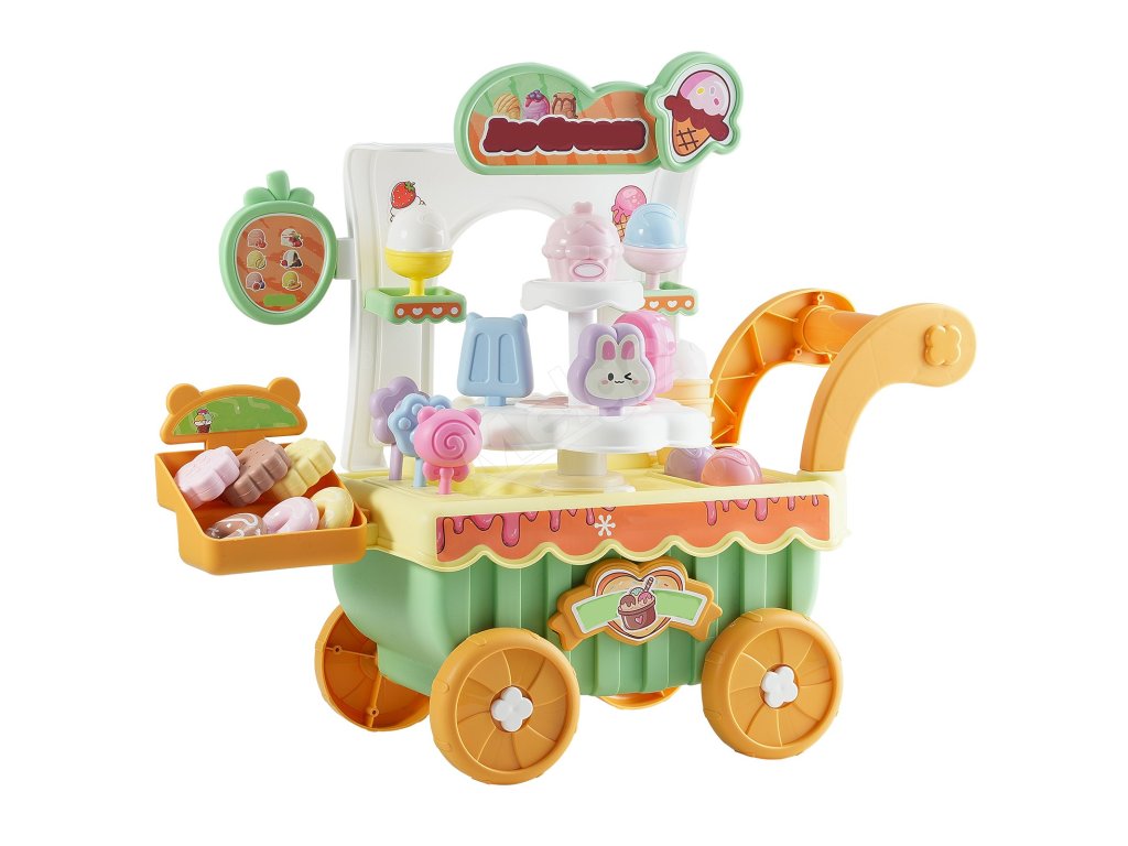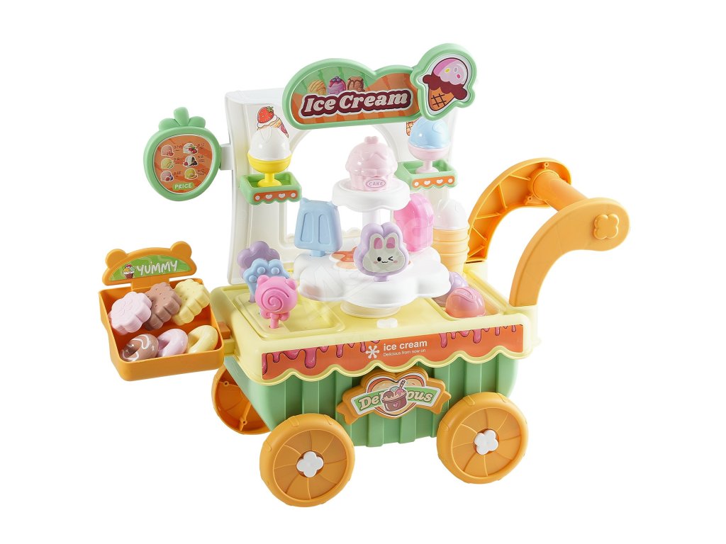 Detský vozík na zmrzlinu s 27 dielmi, úložný, so zvukom a svetlom