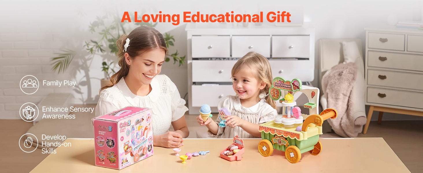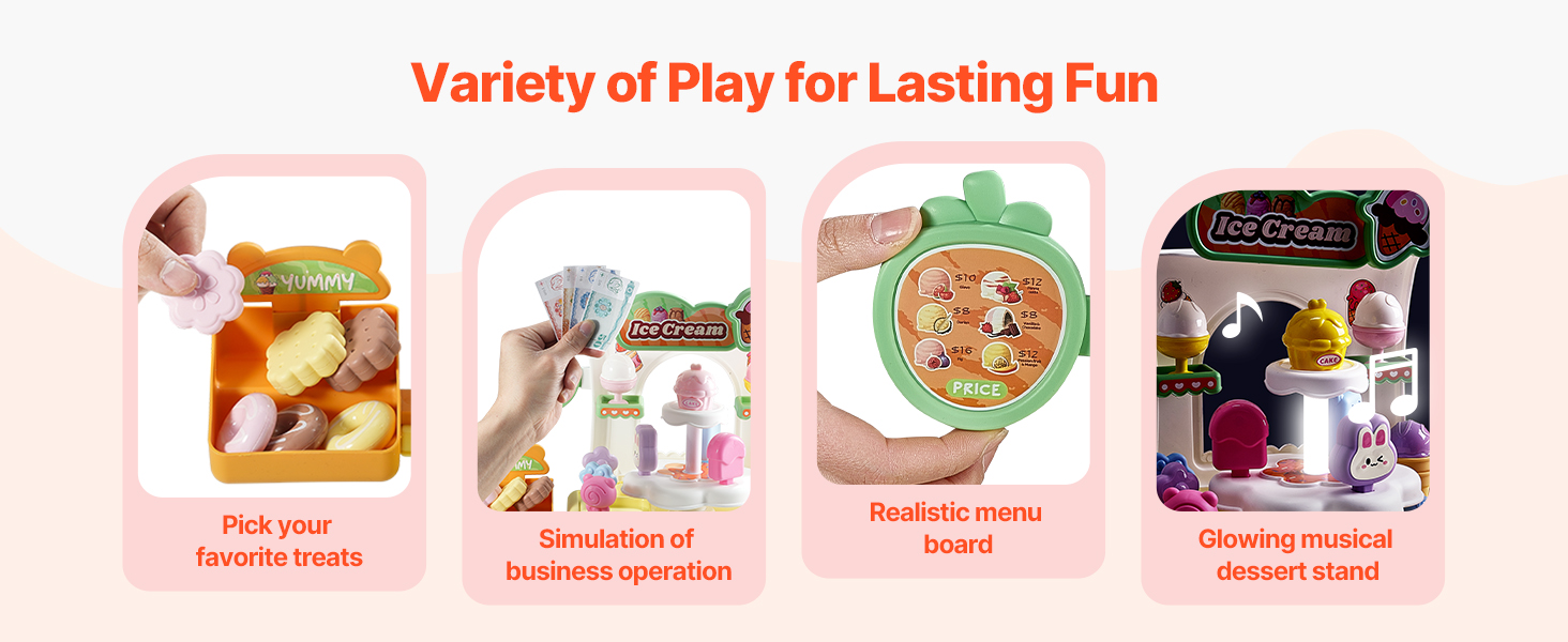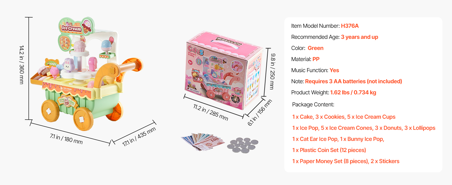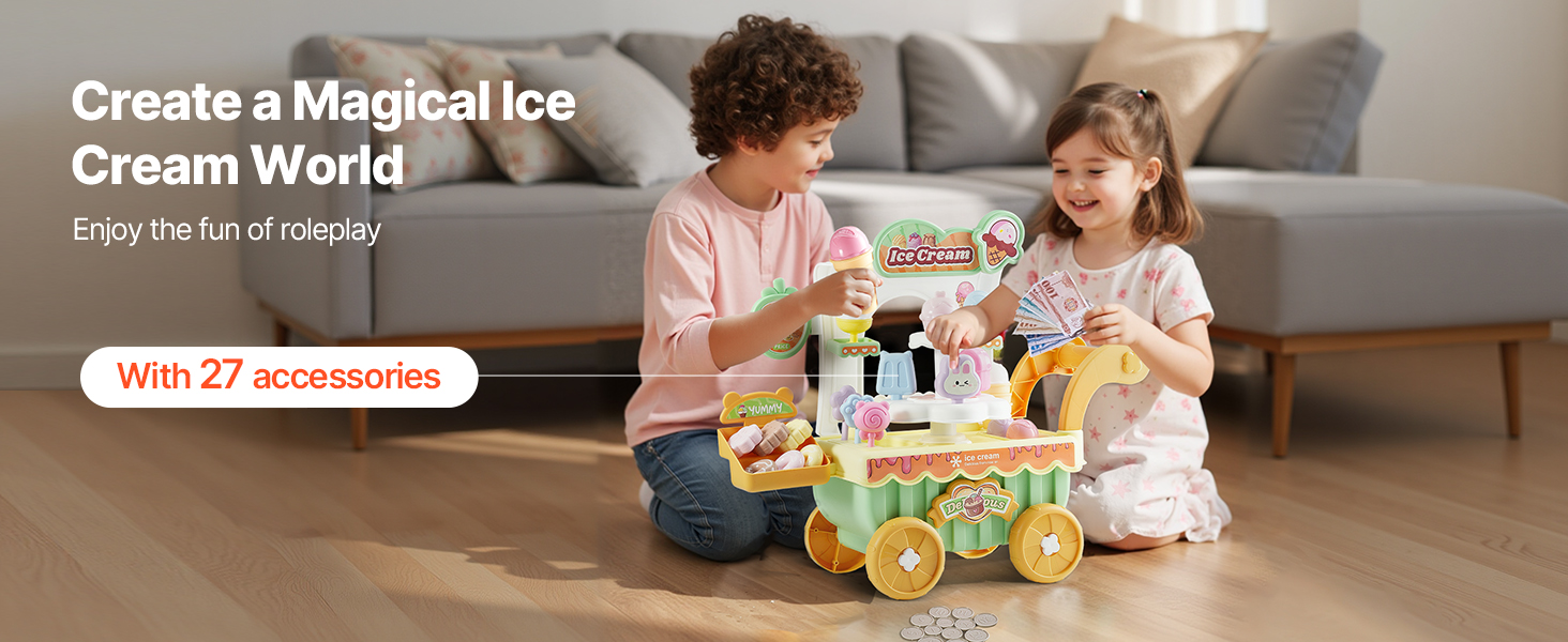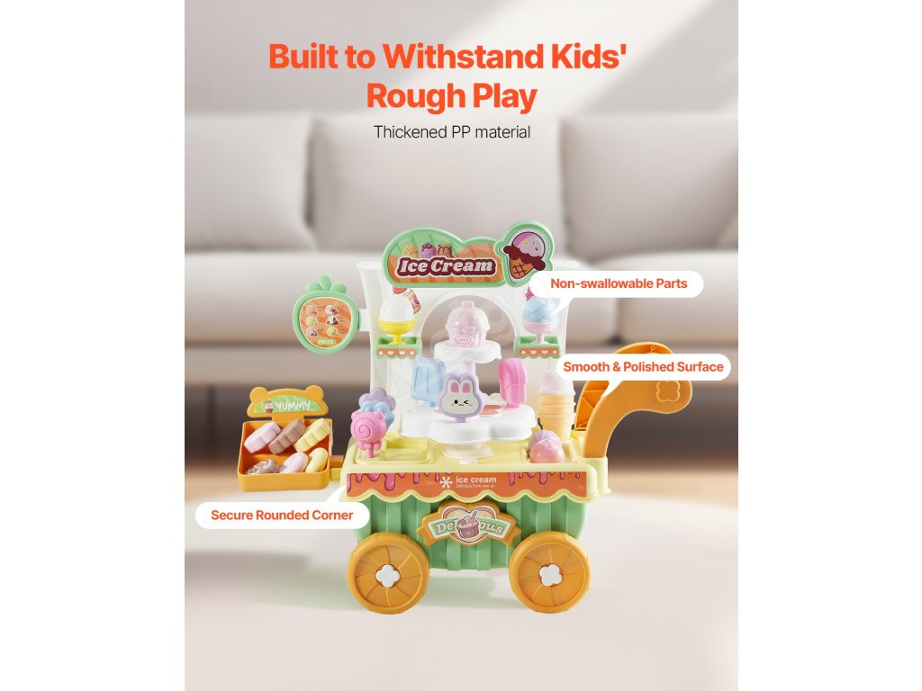 Tento vozík na zmrzlinu pre batoľatá je vyrobený z odolného PP s hladkými, zaoblenými hranami a je stvorený pre bezpečnú zábavu! Navyše, príslušenstvo so skvelou veľkosťou zabraňuje riziku zadusenia - je to skvelá voľba pre malé rúčky.