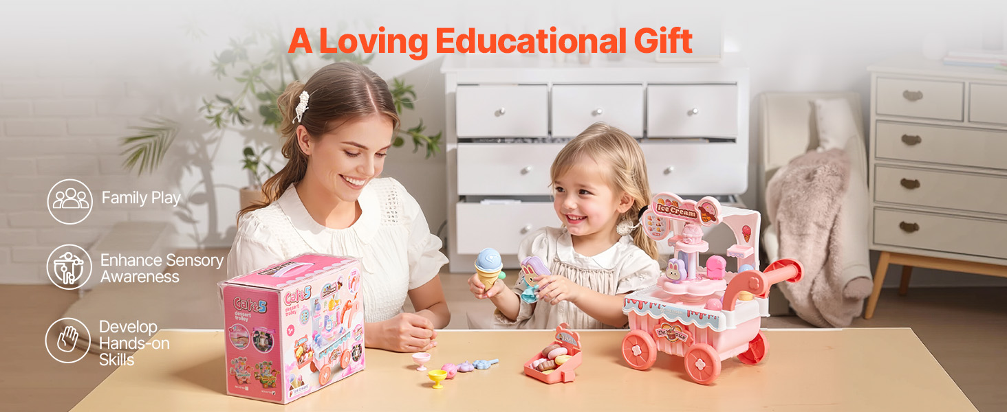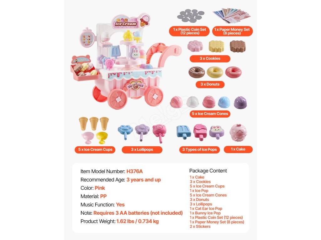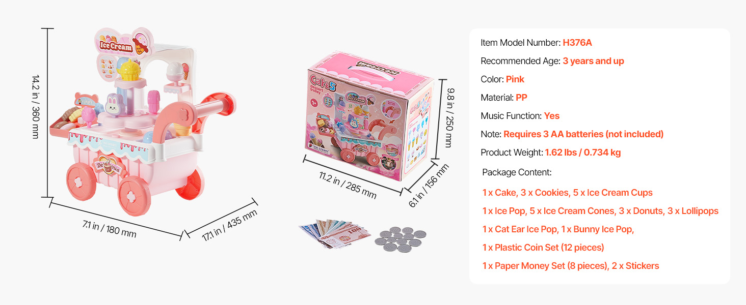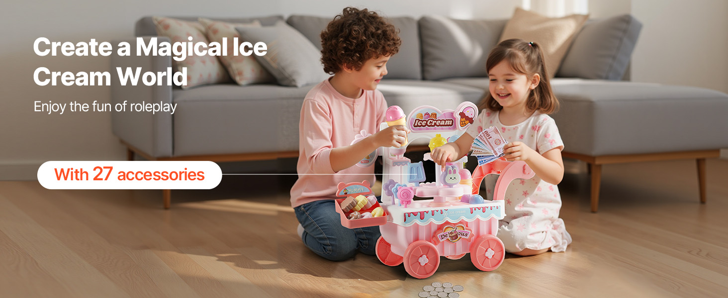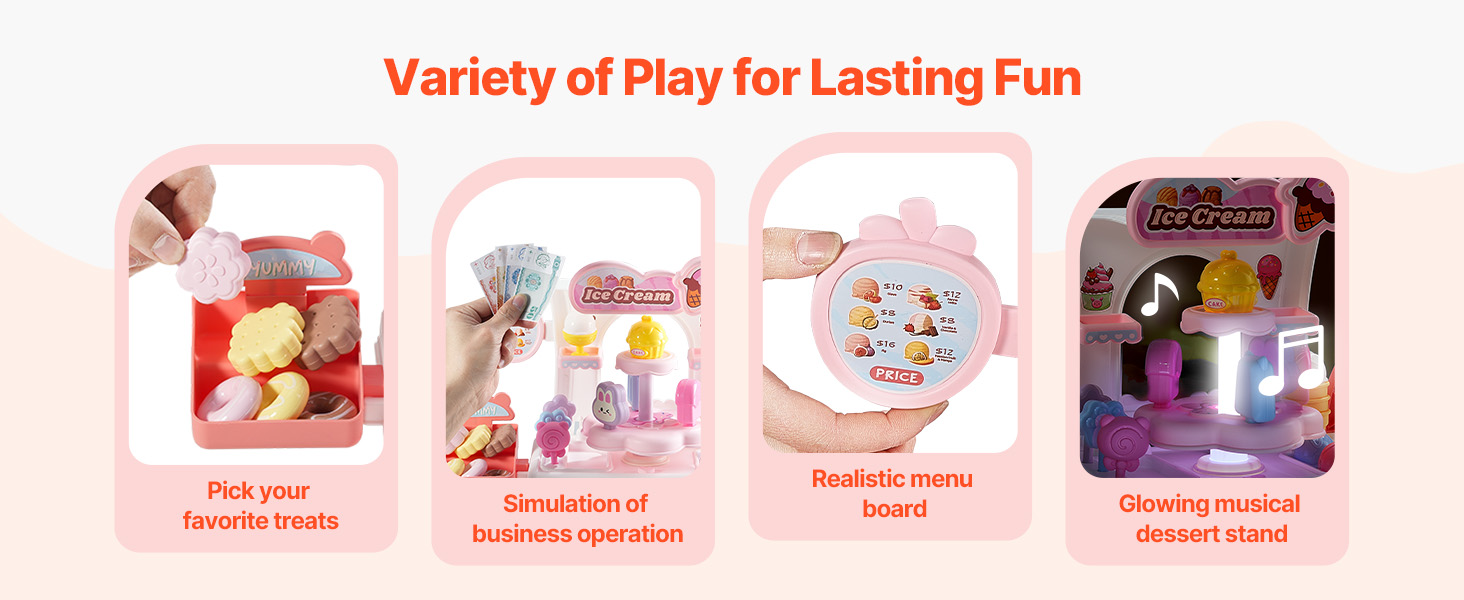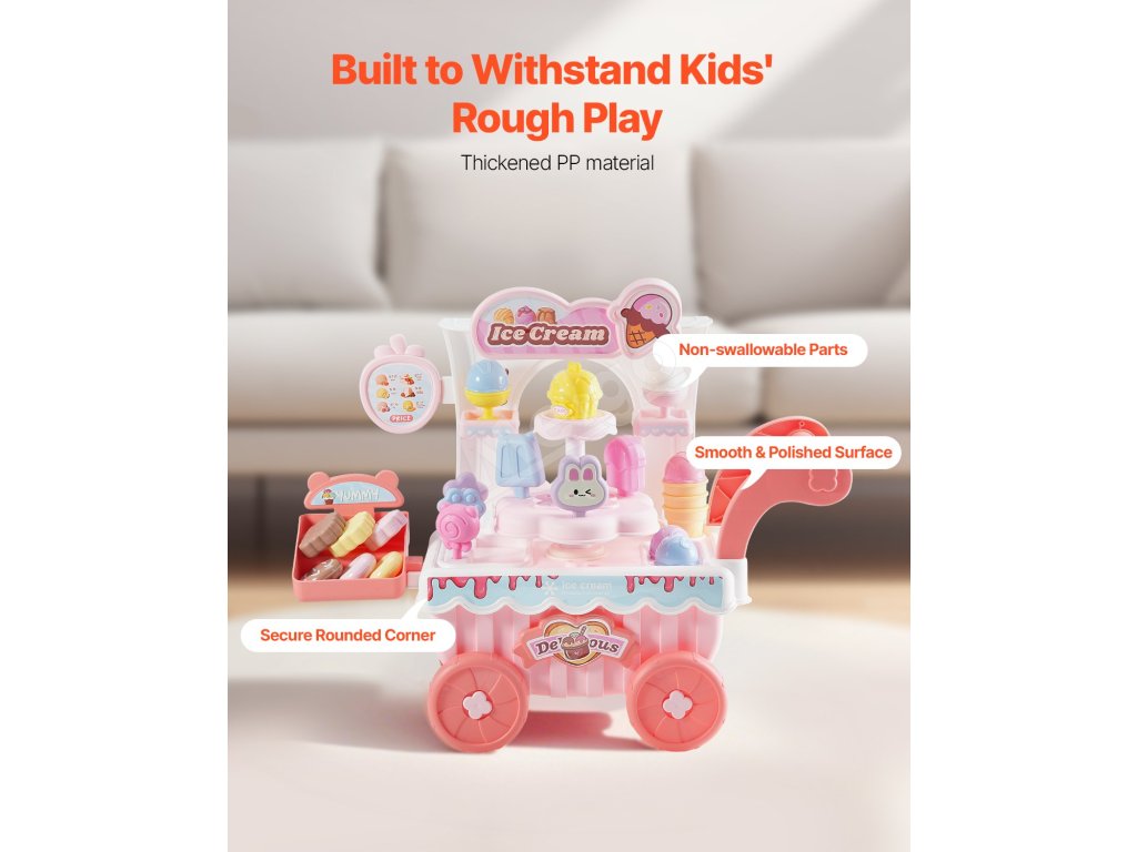 Tento vozík na zmrzlinu pre batoľatá je vyrobený z odolného PP s hladkými, zaoblenými hranami a je stvorený pre bezpečnú zábavu! Navyše, príslušenstvo so skvelou veľkosťou zabraňuje riziku zadusenia - je to skvelá voľba pre malé rúčky.