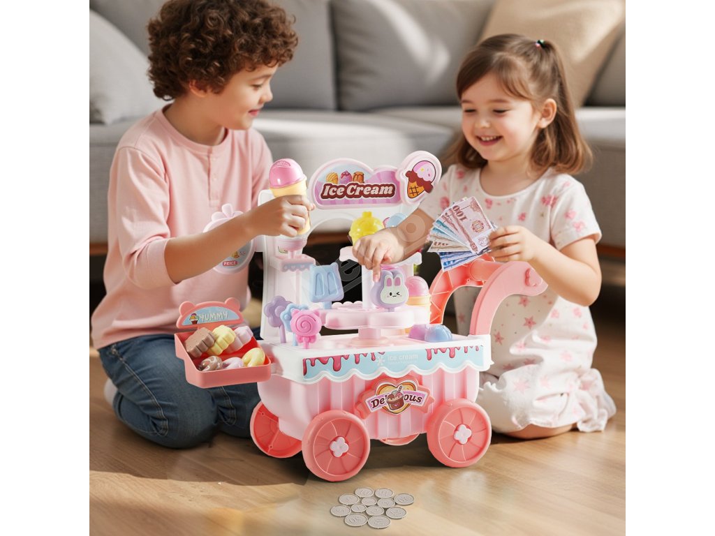 Detský zmrzlinový vozík 27 dielov, peniaze, zvuk a svetlo, 3+