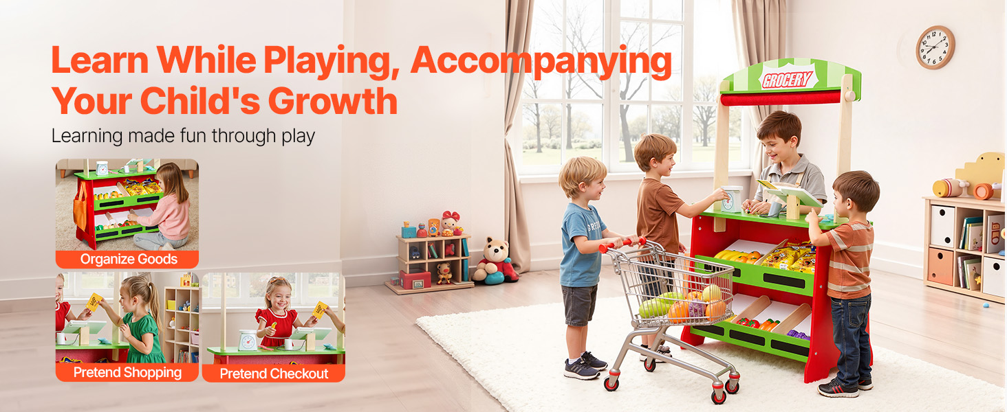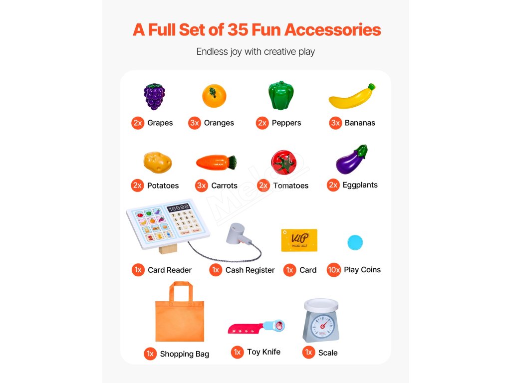 Táto detská hracia súprava obchodu s potravinami, navrhnutá pre deti 3+, podporuje učenie počas hry! Pomáha rozvíjať kognitívne, matematické, logické a sociálne zručnosti - ideálne pre rast a rozvoj vášho dieťaťa.