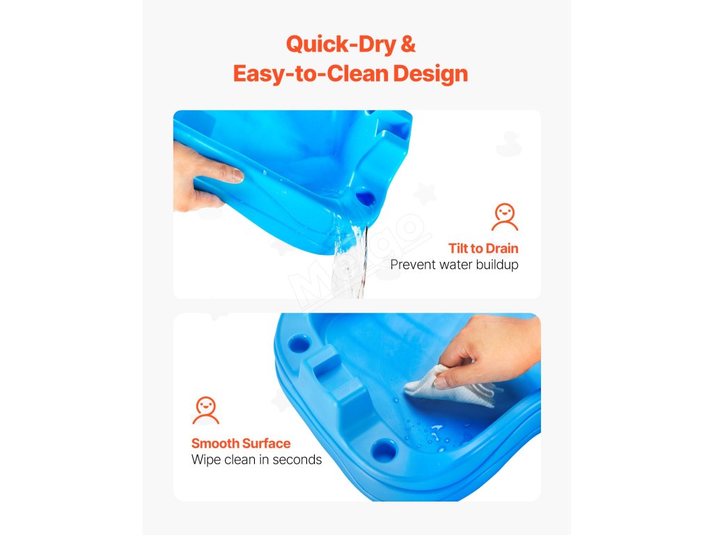 Tento detský senzorický stolík na aktivity je vyrobený z odolného PP materiálu, ktorý je odolný voči praskaniu, a zaručuje bezpečné používanie. A zosilnená základová doska odolná proti deformáciám zaisťuje stabilný a bezpečný základ, ktorý unesie až 8 000 ml vody alebo 44 libier (20 kg) piesku.