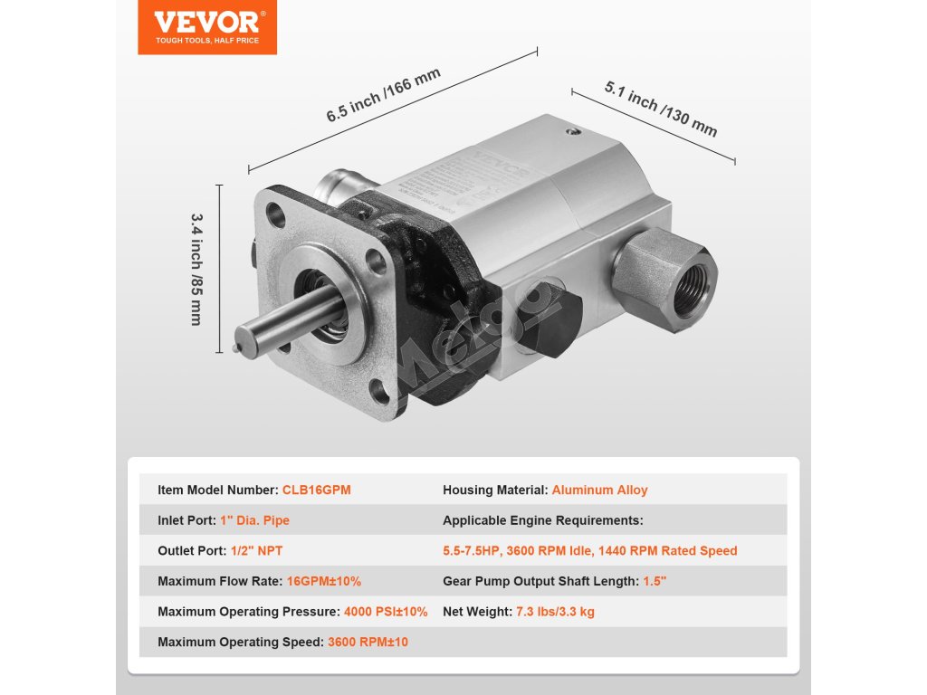 Hydraulické ozubené čerpadlo 60.6 L/min, 27.6 MPa, 2.54/1.27 cm NPT