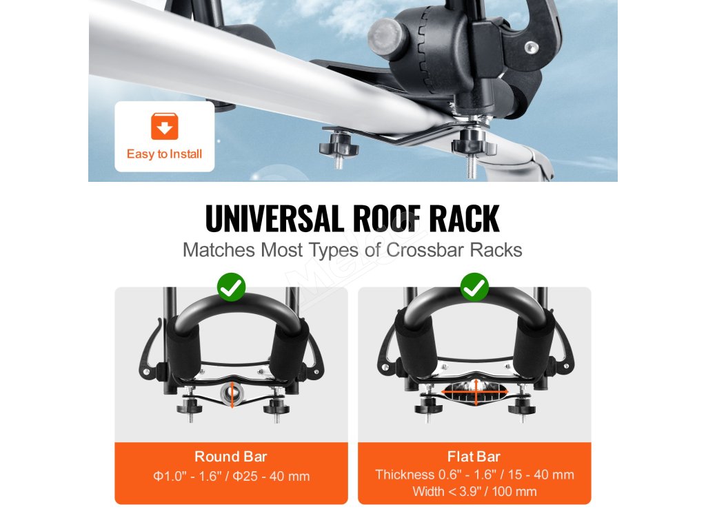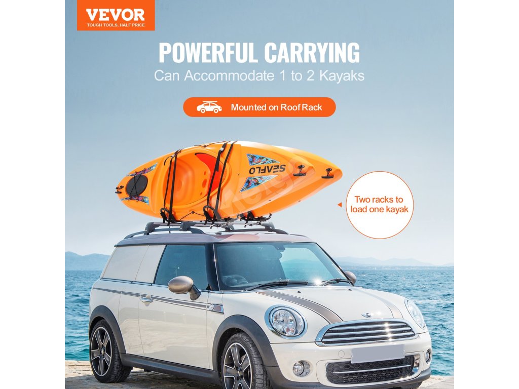 Tento strešný nosič kajakov je navrhnutý s dostatočným priestorom a jednoduchou spodnou montážou, takže sa nemusíte príliš obávať nesúladu s priečnikom auta.