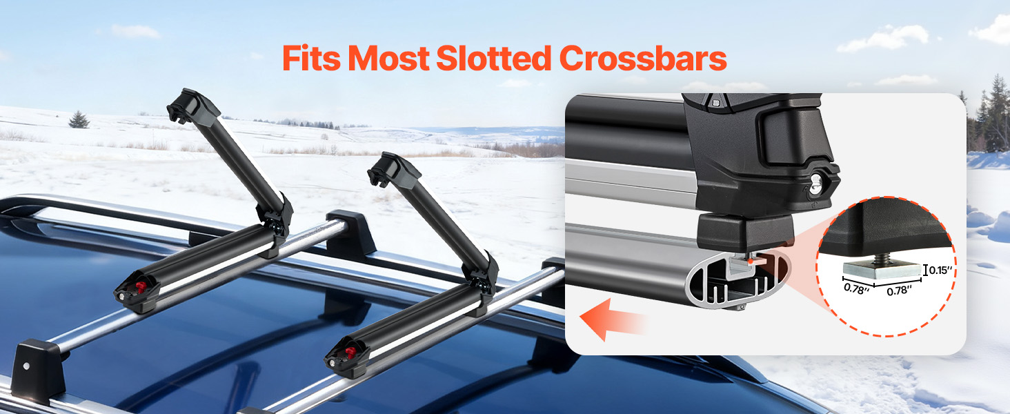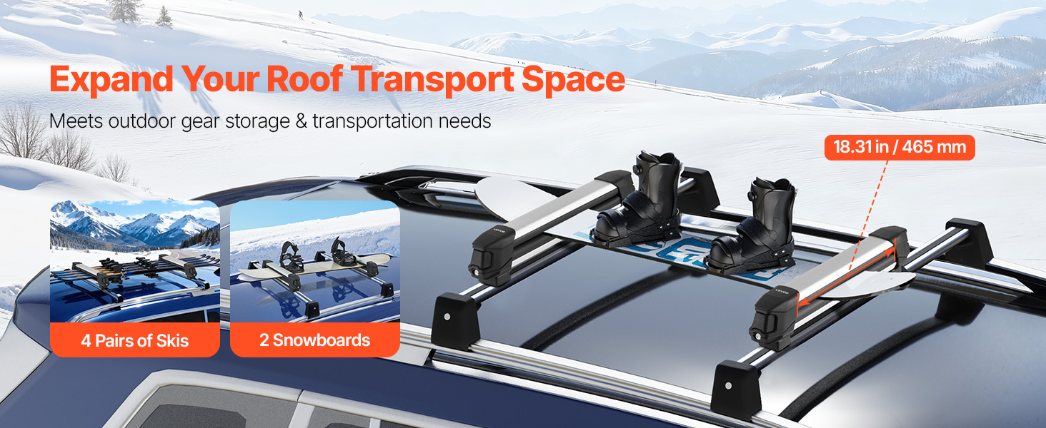 Náš strešný nosič lyží a snowboardov obsahuje zámok proti krádeži na bezpečnú a pohodlnú prepravu. Mäkké gumové podložky odolávajú poškriabaniu a udržujú lyže pevne na mieste. Polovičný valcový dizajn znižuje odpor vetra a hluk, zatiaľ čo odolný rám z hliníkovej zliatiny zaručuje trvalú spoľahlivosť.