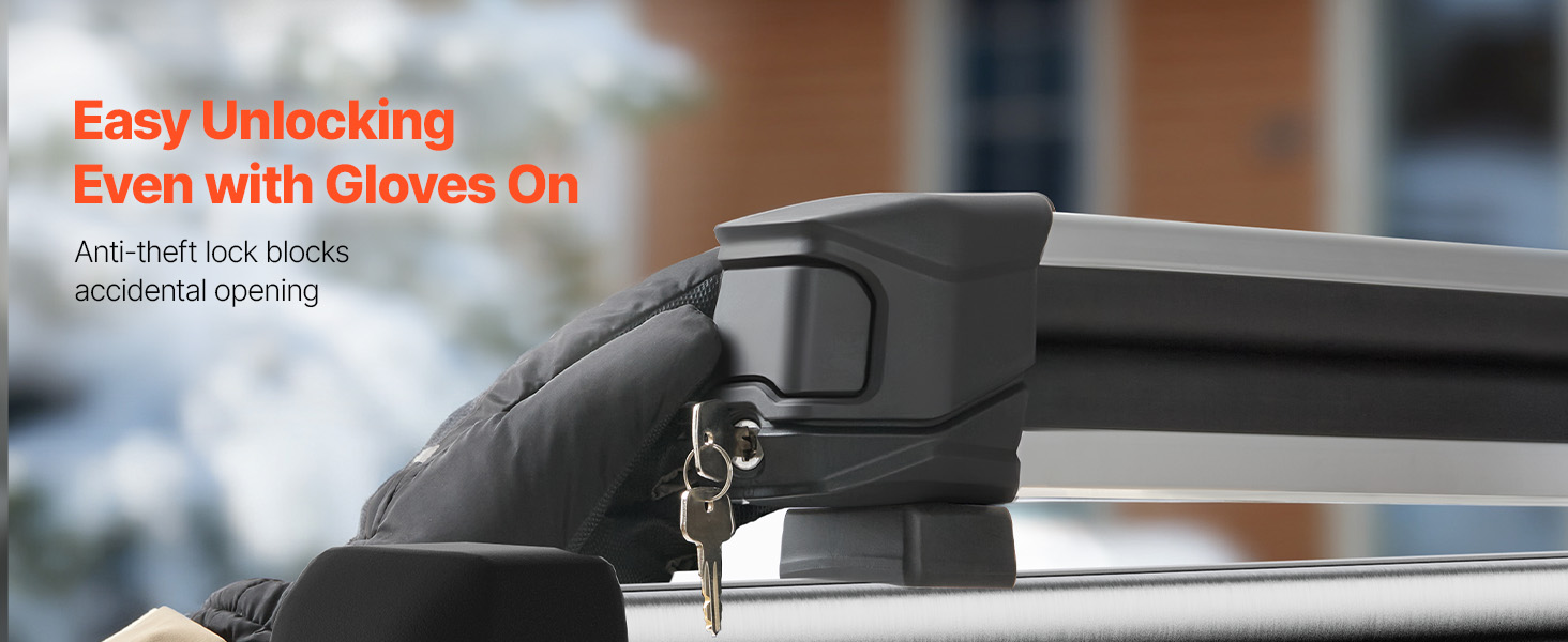 Náš nosič lyží je vybavený zámkom proti krádeži, ktorý možno ľahko zaistiť alebo uvoľniť aj v rukaviciach. Táto premyslená konštrukcia vám umožňuje rýchlu a efektívnu obsluhu počas outdoorových výletov bez toho, aby ste si museli vyzliecť rukavice.