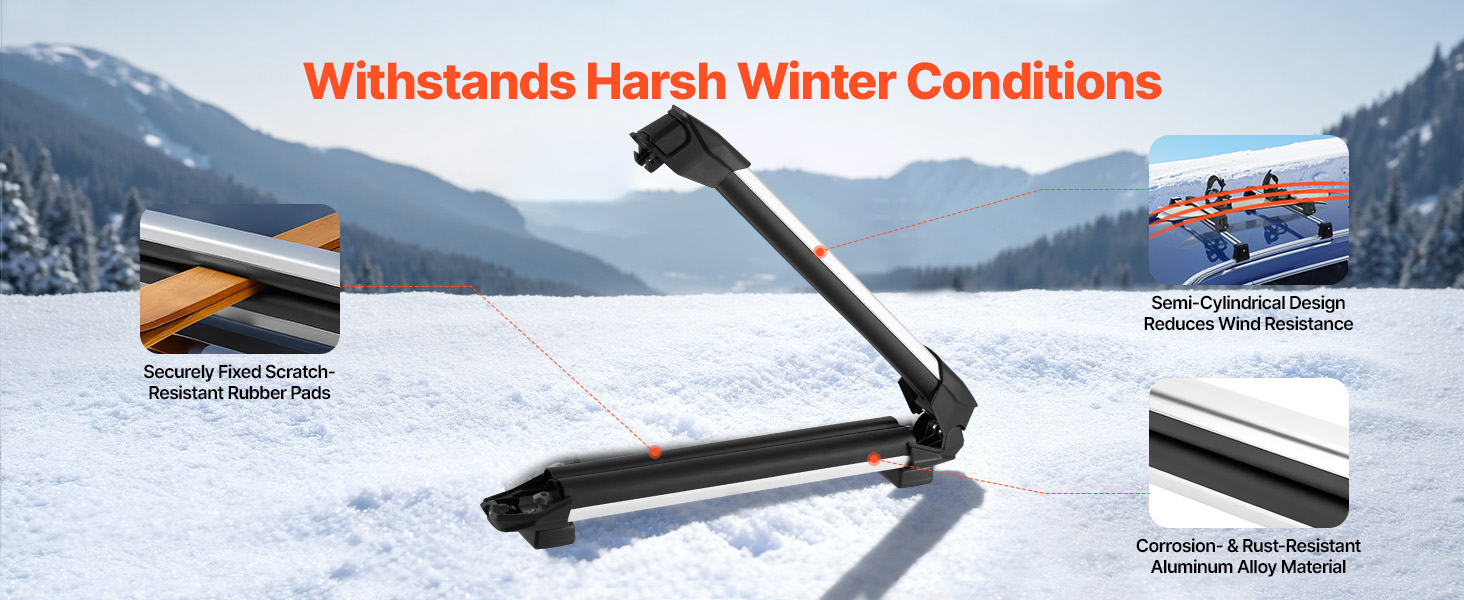 Tento nosič na snowboardy je vyrobený z hliníkovej zliatiny odolnej proti korózii a korózii, takže odolá aj drsným zimným podmienkam. Pevné gumové podložky proti poškriabaniu pevne držia lyže, odolávajú poškodeniu počas prepravy a zaisťujú bezpečné a pohodlné cestovanie.