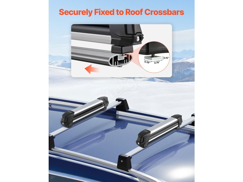 Náš strešný nosič lyží a snowboardov obsahuje zámok proti krádeži na bezpečnú a pohodlnú prepravu. Mäkké gumové podložky odolávajú poškriabaniu a udržujú lyže pevne na mieste. Polovičný valcový dizajn znižuje odpor vetra a hluk, zatiaľ čo odolný rám z hliníkovej zliatiny zaručuje trvalú spoľahlivosť.