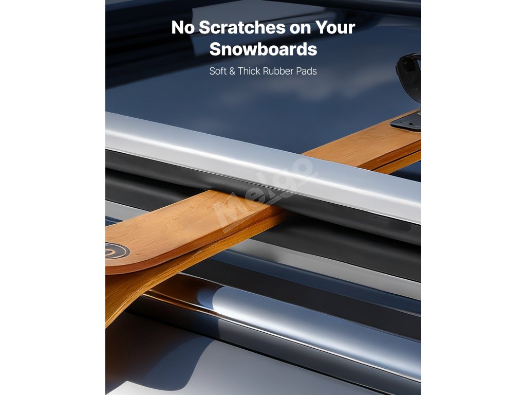 Tento nosič na snowboardy je vyrobený z hliníkovej zliatiny odolnej proti korózii a korózii, takže odolá aj drsným zimným podmienkam. Pevné gumové podložky proti poškriabaniu pevne držia lyže, odolávajú poškodeniu počas prepravy a zaisťujú bezpečné a pohodlné cestovanie.