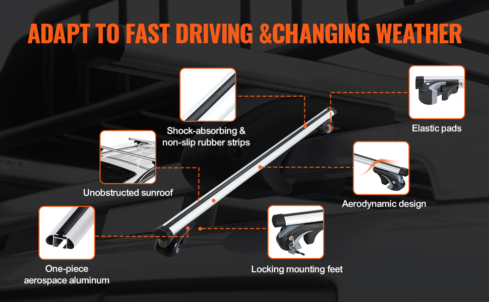 Priečne tyče strešného nosiča sú vyrobené z najkvalitnejších materiálov vrátane zosilneného leteckého hliníka; naše tyče strešného nosiča sú skonštruované na dlhodobé používanie. Nemusíte sa obávať deformácií ani ohýbania, takže sa môžete pustiť do nespočetných dobrodružstiev.