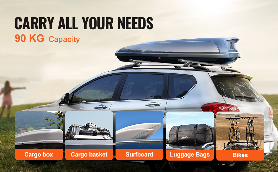 Zbaľte si všetko s istotou! Naše priečne nosiče strešného nosiča sa môžu pochváliť nosnosťou 90 kg, čo vám umožní prepravovať viac vybavenia a užívať si priestranný interiér počas rodinných ciest.