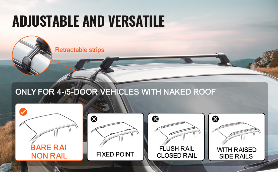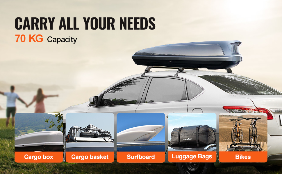 Naše priečniky strešného nosiča sú dokonalým riešením pre 4 alebo 5-dverové vozidlá s holou strechou (s dažďovým žľabom Vzdialenosť: 105-107,7 cm (41,3-42,4 palca) ; Vzdialenosť okien: 114,4-131 cm (45-51,6 palca). Ľahko ich nainštalujte a prevážajte batožinu, bicykle, lyže a iné vybavenie bez ďalších prenájmov.