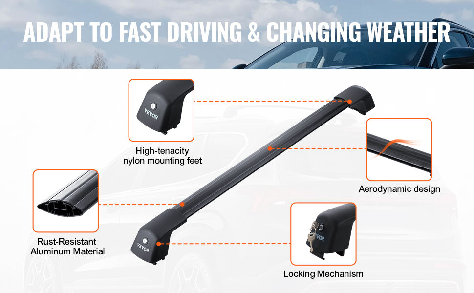 Priečne tyče strešného nosiča sú vyrobené z najkvalitnejších materiálov vrátane nehrdzavejúceho hliníka a zosilneného nylonu, naše tyče strešného nosiča sú navrhnuté na dlhodobé používanie. Nemusíte sa obávať deformácií ani ohýbania, takže sa môžete pustiť do nespočetných dobrodružstiev.