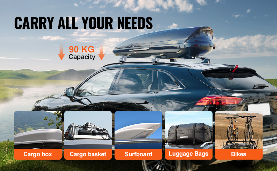 Zbaľte si všetko s dôverou! Naše priečne nosiče strešného nosiča sa môžu pochváliť nosnosťou 90 kg, čo vám umožní prepravovať viac vybavenia a užívať si priestranný interiér počas rodinných ciest.