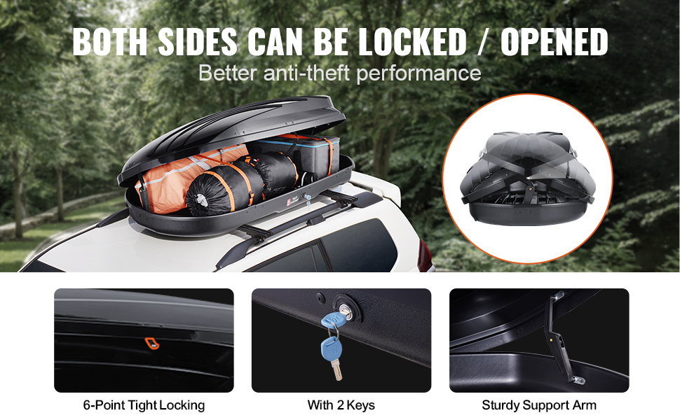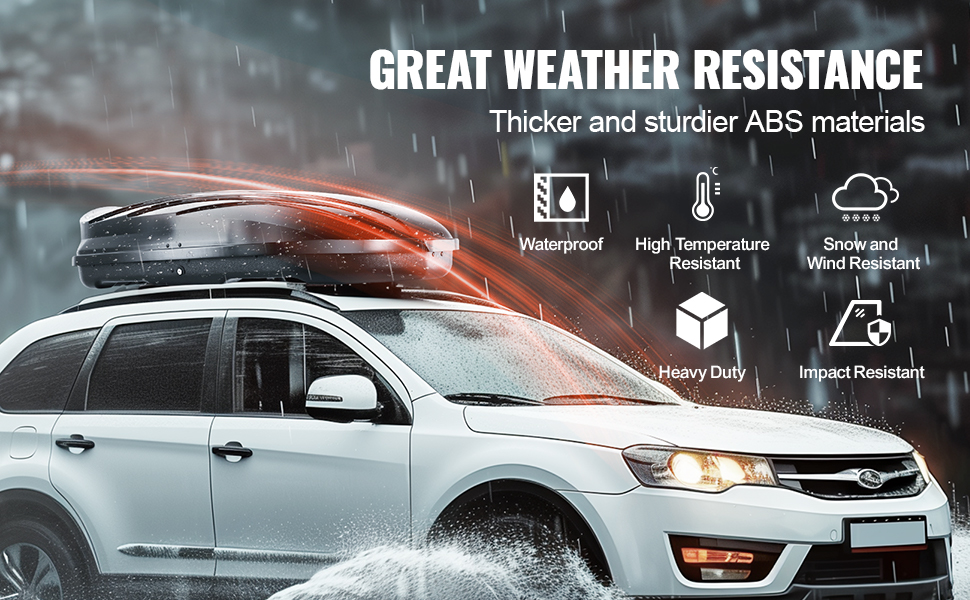 Náš strešný nákladný box je vyrobený prevažne z hrubého materiálu ABS, trvanlivého a odolného voči rozbitiu, účinne vodotesného a odolného voči teplu, ktorý chráni vaše cennosti pred poveternostnými vplyvmi.
