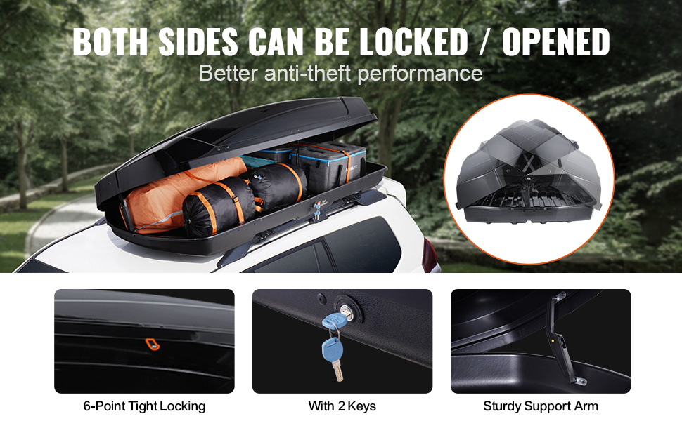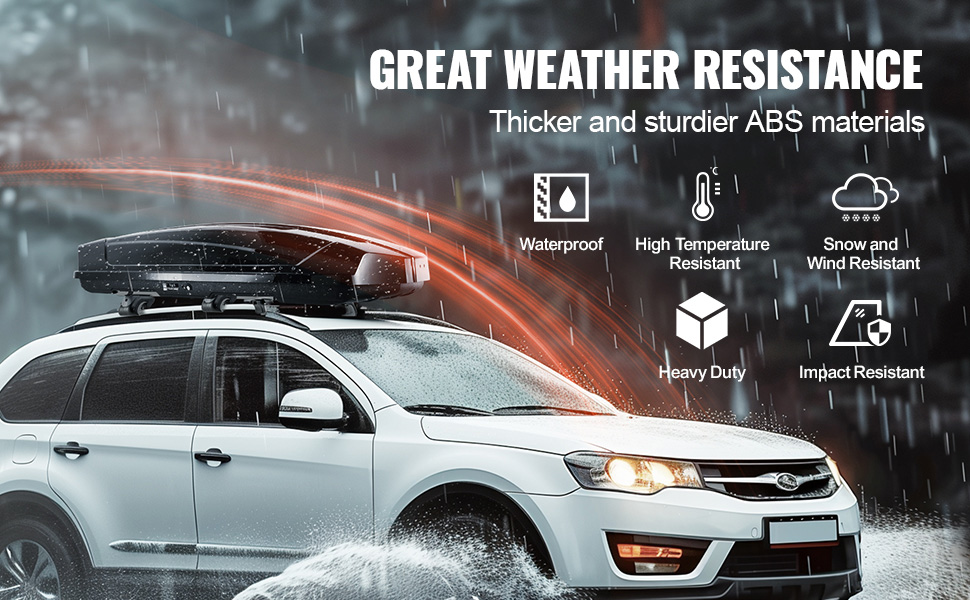 Náš strešný nákladný box je vyrobený prevažne z hrubého materiálu ABS, trvanlivého a odolného voči rozbitiu, účinne vodotesného a odolného voči teplu, ktorý chráni vaše cennosti pred poveternostnými vplyvmi.