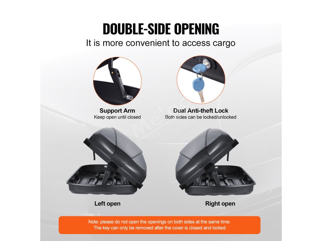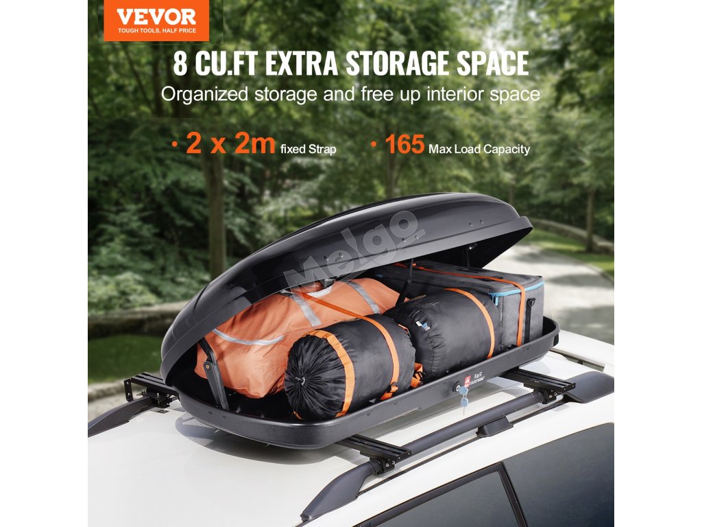 Strešný nákladný box s odolným materiálom ABS a veľkým úložným priestorom sa stane vaším spoľahlivým spoločníkom na cestách. S maximálnou nosnosťou 165 kg bez námahy uskladní outdoorové športové vybavenie alebo rodinnú cestovnú batožinu, vďaka čomu môžete svoje veci ľahko prepraviť kamkoľvek.