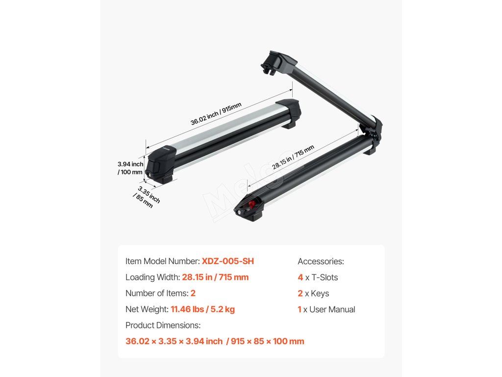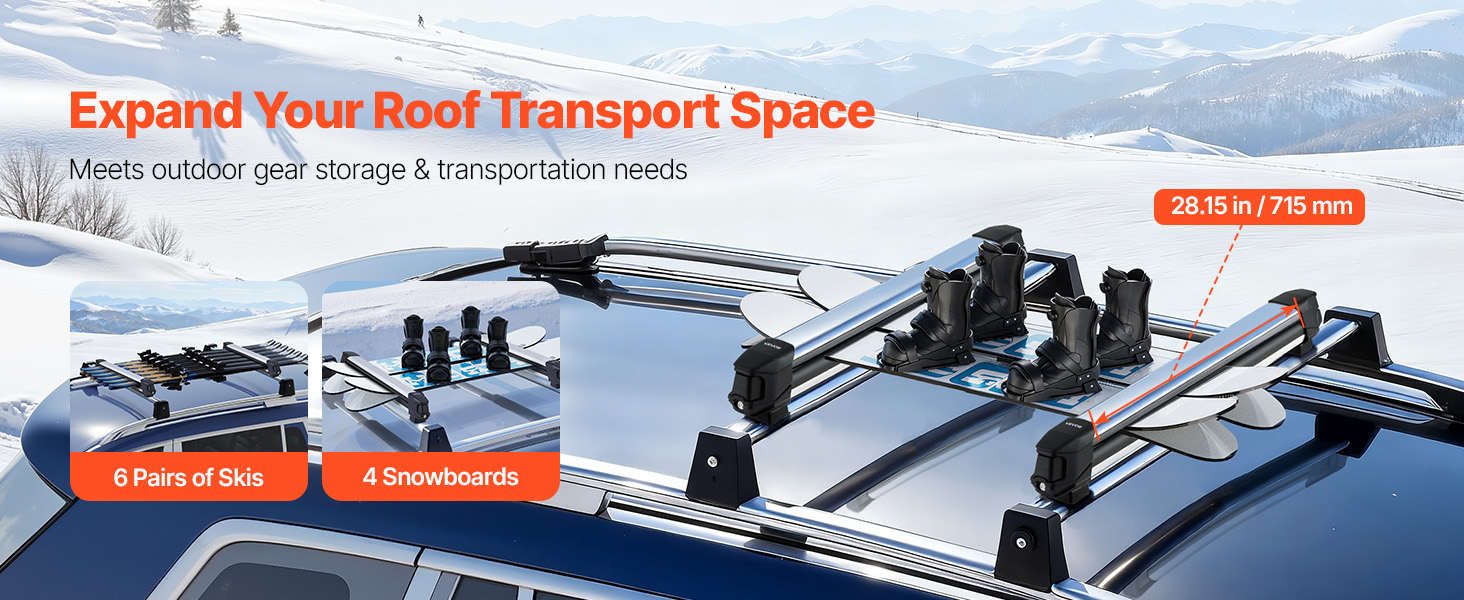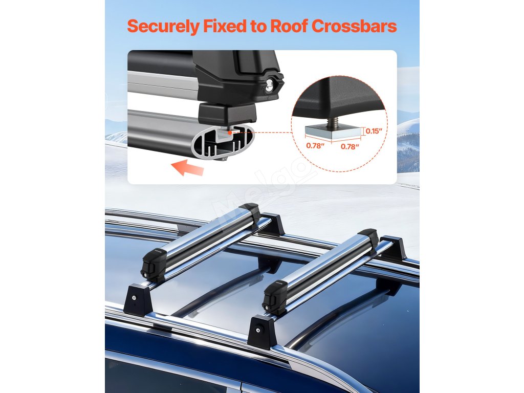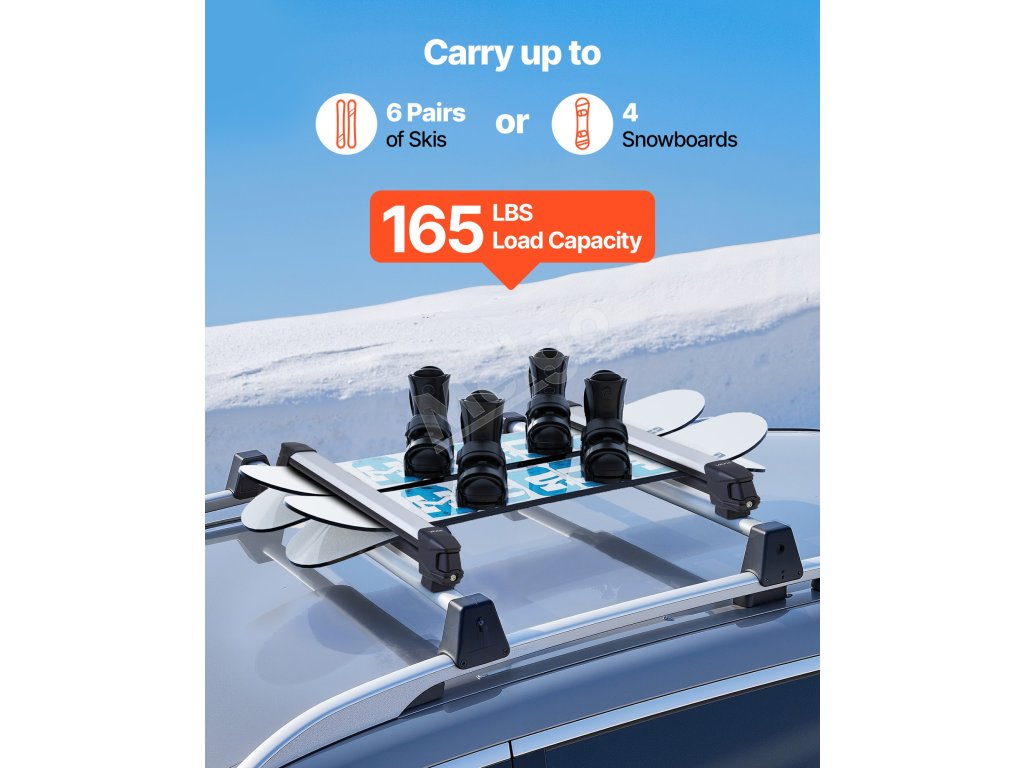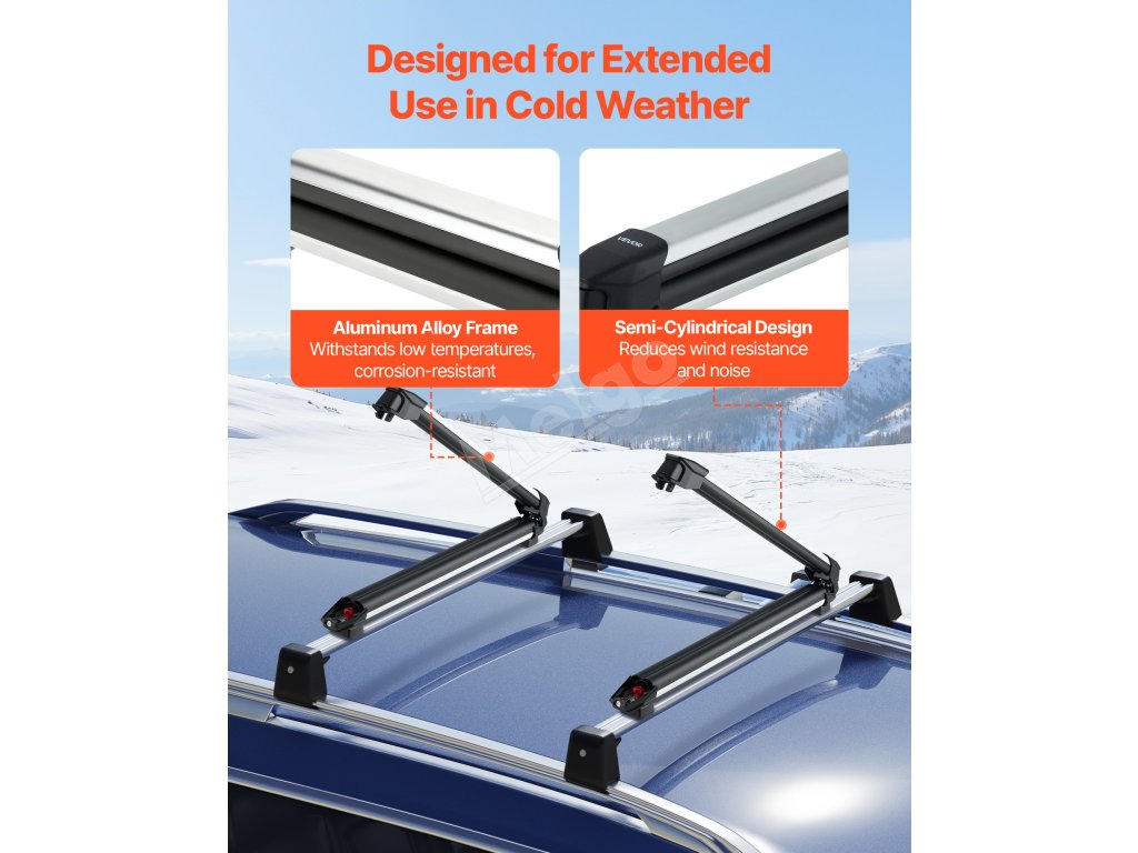 Náš strešný nosič na lyže a snowboardy obsahuje zámok proti krádeži pre bezpečnú a pohodlnú prepravu. Mäkké gumové podložky odolávajú poškriabaniu a udržujú lyže pevne na mieste. Polocylindrický dizajn znižuje odpor vzduchu a hluk, zatiaľ čo odolný rám z hliníkovej zliatiny zaručuje dlhodobú spoľahlivosť.