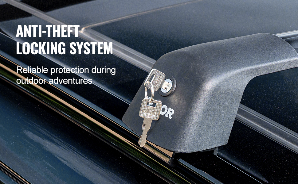 Náš priečny strešný nosič je vybavený spoľahlivým uzamykacím mechanizmom proti krádeži a dvoma kľúčmi, vďaka čomu si môžete užívať outdoorové aktivity bez obáv o bezpečnosť svojich vecí. Užívajte si praktickú bezpečnosť a pokoj počas ciest.