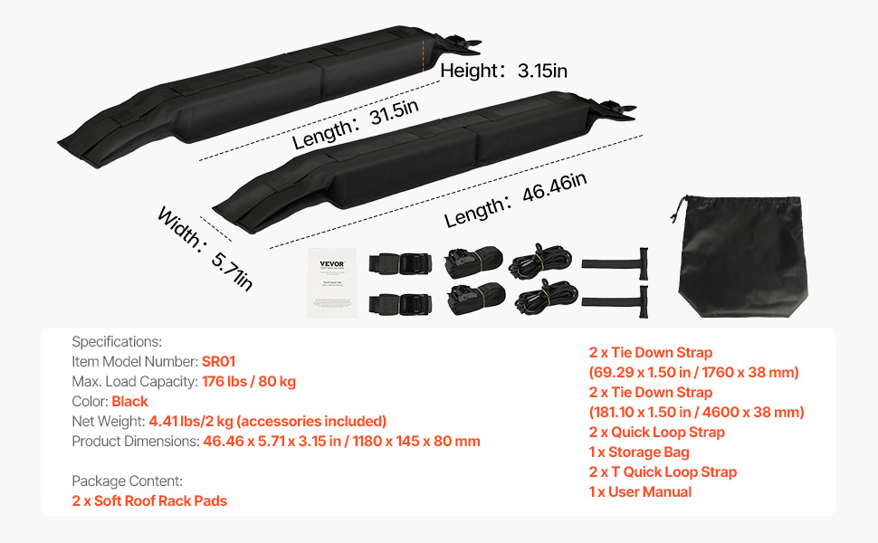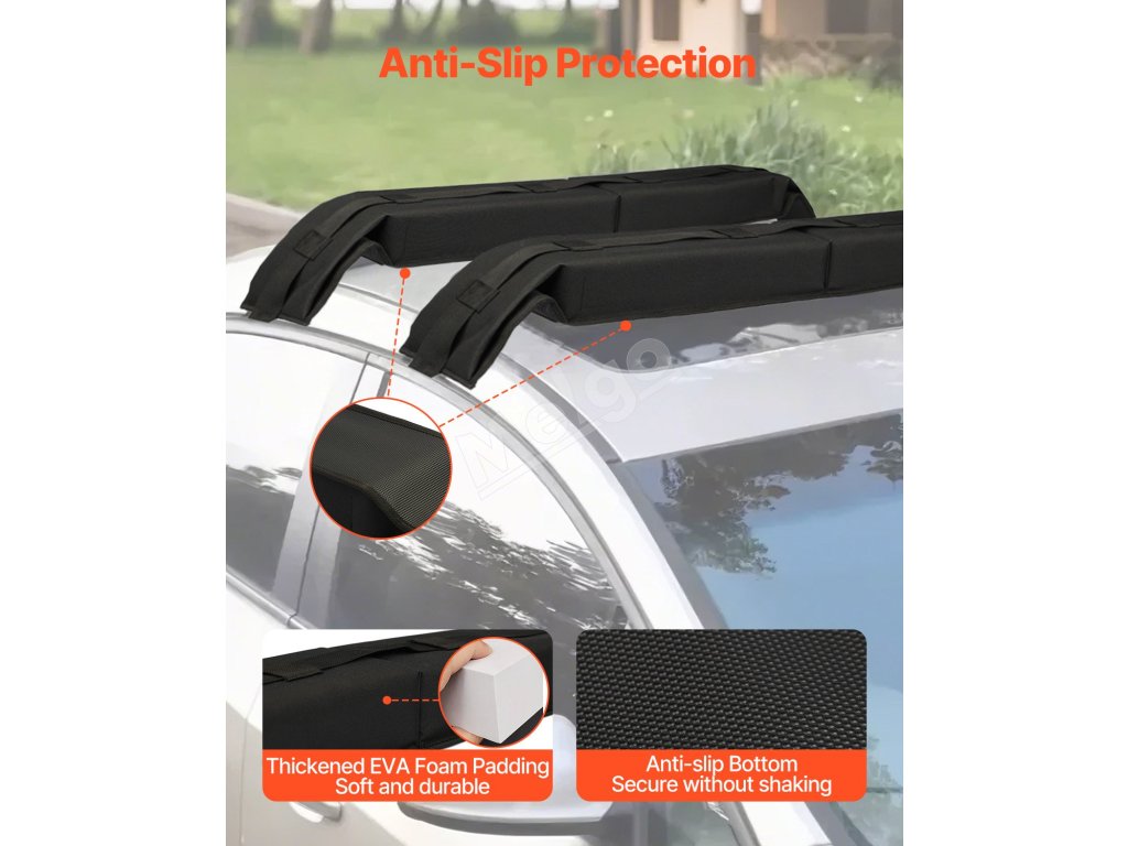 Naše 31,5-palcové mäkké podložky pod strešný nosič sú kompatibilné s väčšinou vozidiel s bočnými lištami alebo bez nich a poskytujú nosnosť až 176 kg. Tieto podložky pod strešný nosič kajakov sú vyrobené z mäkkých, ale odolných materiálov a zabezpečujú bezpečné a spoľahlivé riešenie na prepravu kajakov, kanoe, SUP, snowboardov atď.