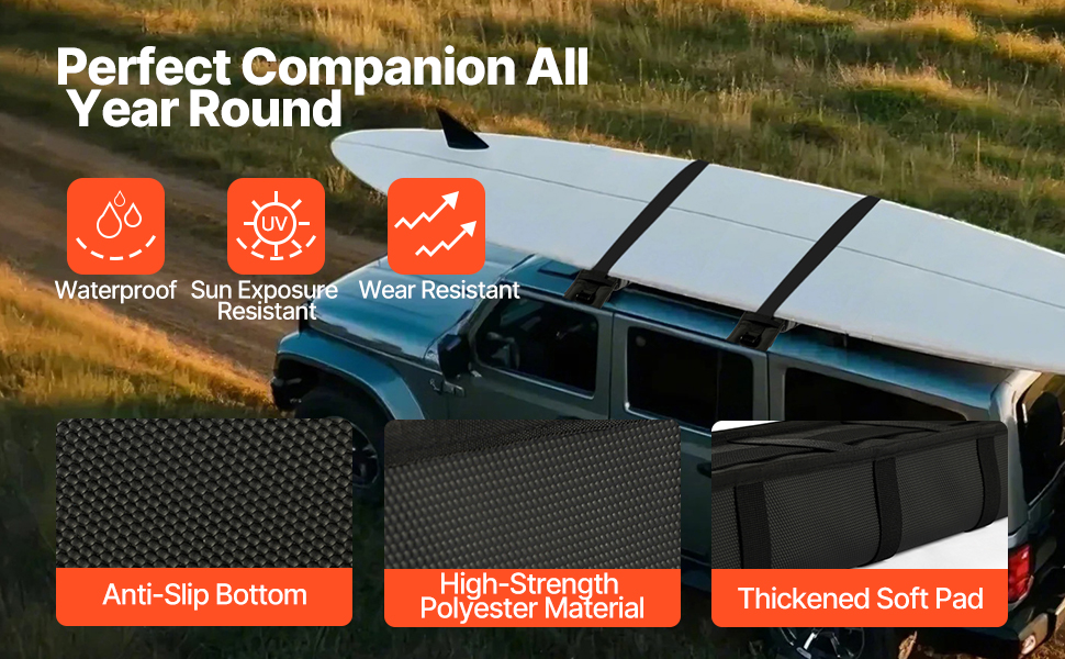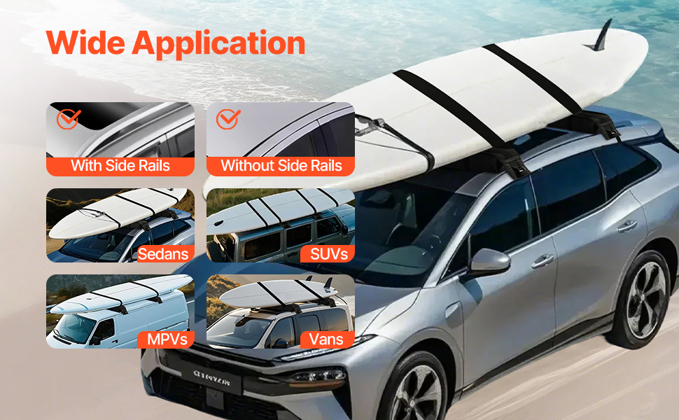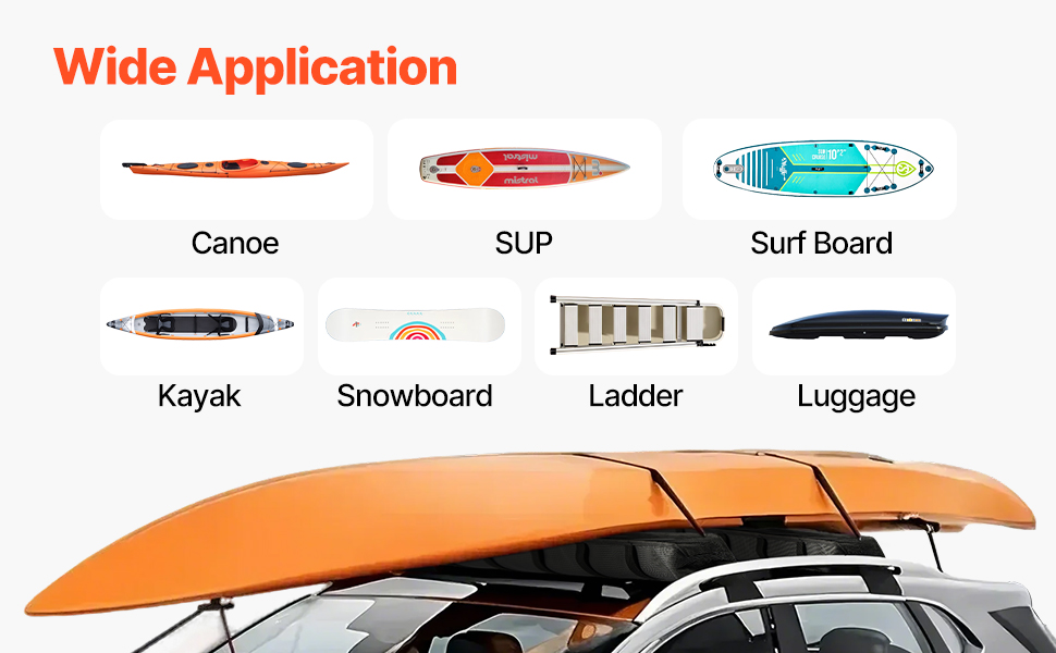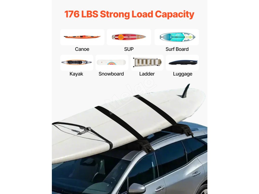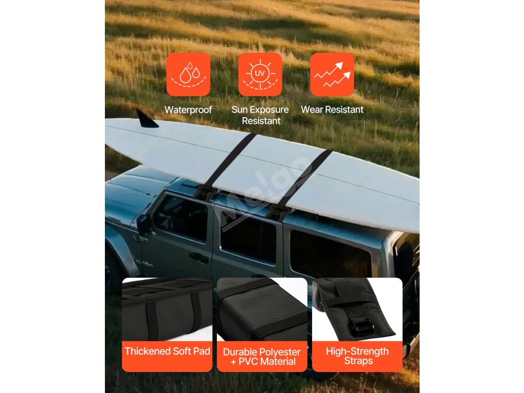 Vytvorte si dodatočný úložný priestor na streche auta a bezpečne prepravujte kajaky, surfy, dlhé dosky, pádla, snowboardy, kanoe a ďalšie outdoorové vybavenie s ľahkosťou. Naša súprava mäkkých nosičov je vhodná na rôzne aktivity a každodenné skladovanie.
