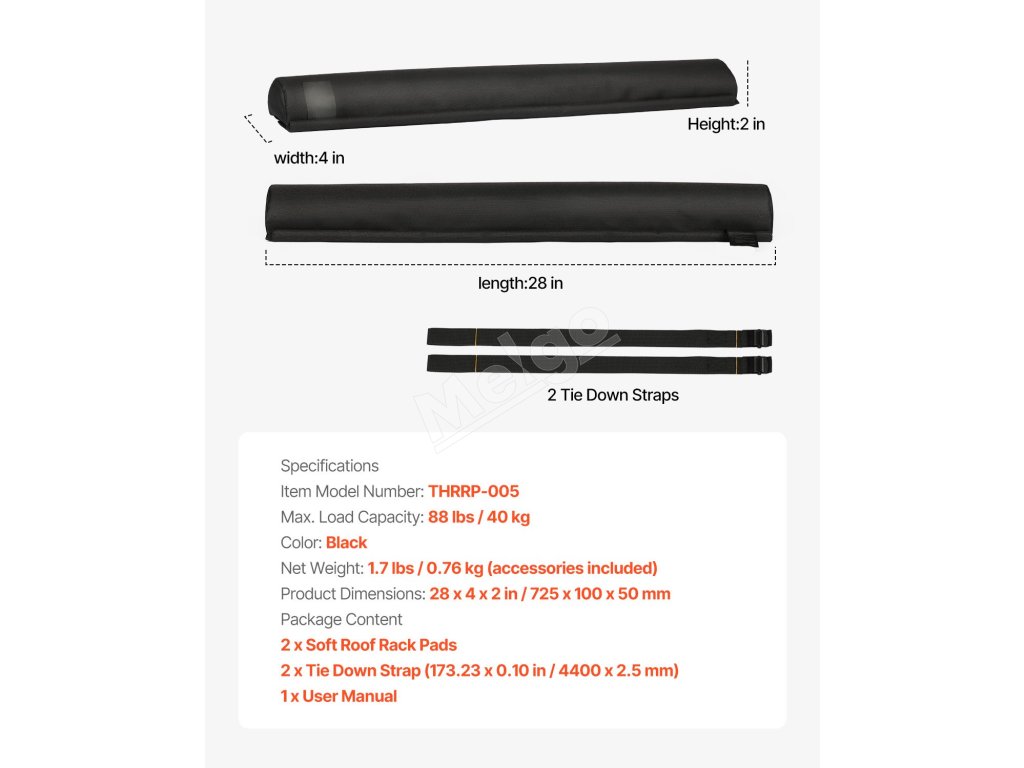 Táto súprava podložiek pod priečniky strešného nosiča, vyrobená z odolnej PVC tkaniny 600D na vonkajšej strane a bavlnenej výplne EPE vo vnútri, je mäkká, trvanlivá, odolná proti opotrebovaniu a nepremokavá, čím ponúka dlhotrvajúcu ochranu vášho vybavenia.