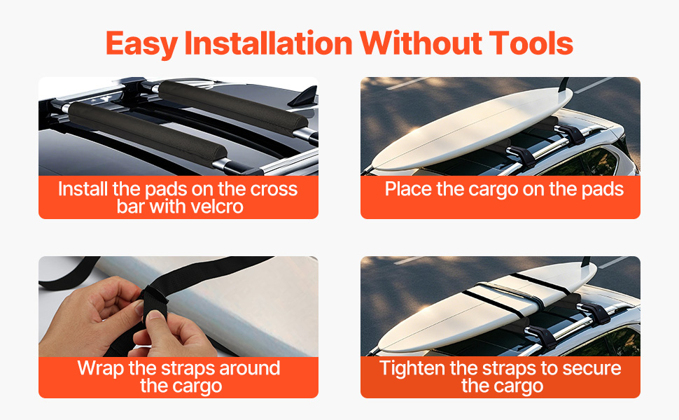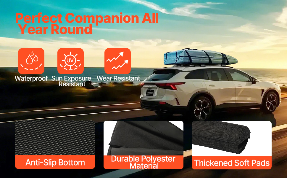 Naše chrániče priečnikov na strechu auta sú vhodné pre väčšinu vozidiel s priečnikmi a podporujú hmotnosť až 88 kg, pričom ponúkajú jednoduchú inštaláciu pomocou pások so suchým zipsom a viazacích popruhov. Vyrobené z odolného PVC 600D a bavlnenej výplne EPE poskytujú vynikajúcu ochranu pre váš rôzny outdoorový výstroj, ako je kajak, SUP, surfovacie dosky.