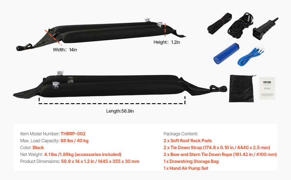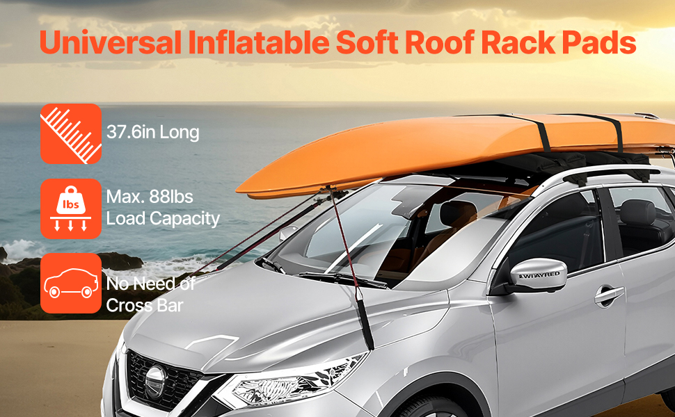 Naše nafukovacie mäkké podložky pod strešné nosiče sú kompatibilné s väčšinou vozidiel s bočnými lištami alebo bez nich a poskytujú nosnosť až 88 kg. Tieto podložky pod strešné nosiče kajakov sú vyrobené z mäkkých, ale odolných materiálov a zabezpečujú bezpečné a spoľahlivé riešenie na prepravu kajakov, kanoe, SUP, snowboardov atď.