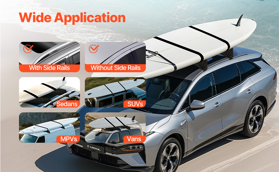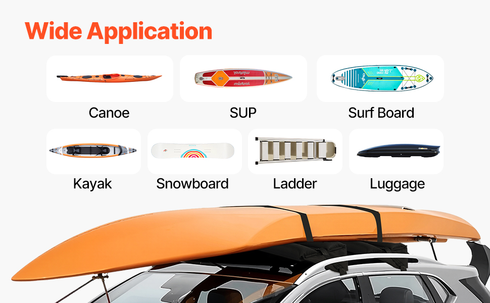 Vytvorte si na streche auta ďalší úložný priestor a bezpečne prepravujte kajaky, surfovacie dosky, dlhé dosky, pádla, snowboardy, kanoe a ďalšie outdoorové vybavenie s ľahkosťou. Naša súprava mäkkých nosičov je vhodná na rôzne aktivity a každodenné skladovanie.