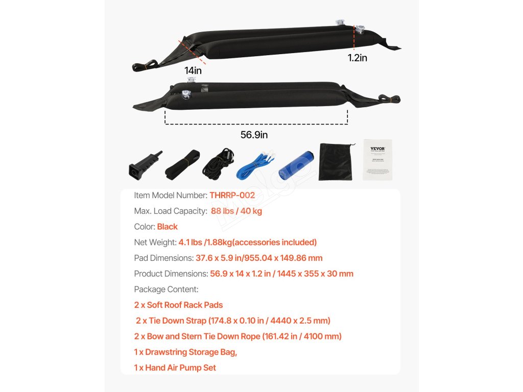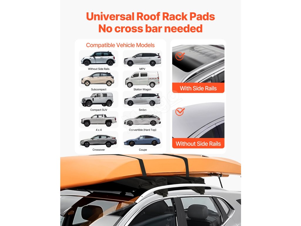 Naše nafukovacie mäkké podložky pod strešné nosiče sú kompatibilné s väčšinou vozidiel s bočnými lištami alebo bez nich a poskytujú nosnosť až 88 kg. Tieto podložky pod strešné nosiče kajakov sú vyrobené z mäkkých, ale odolných materiálov a zabezpečujú bezpečné a spoľahlivé riešenie na prepravu kajakov, kanoe, SUP, snowboardov atď.
