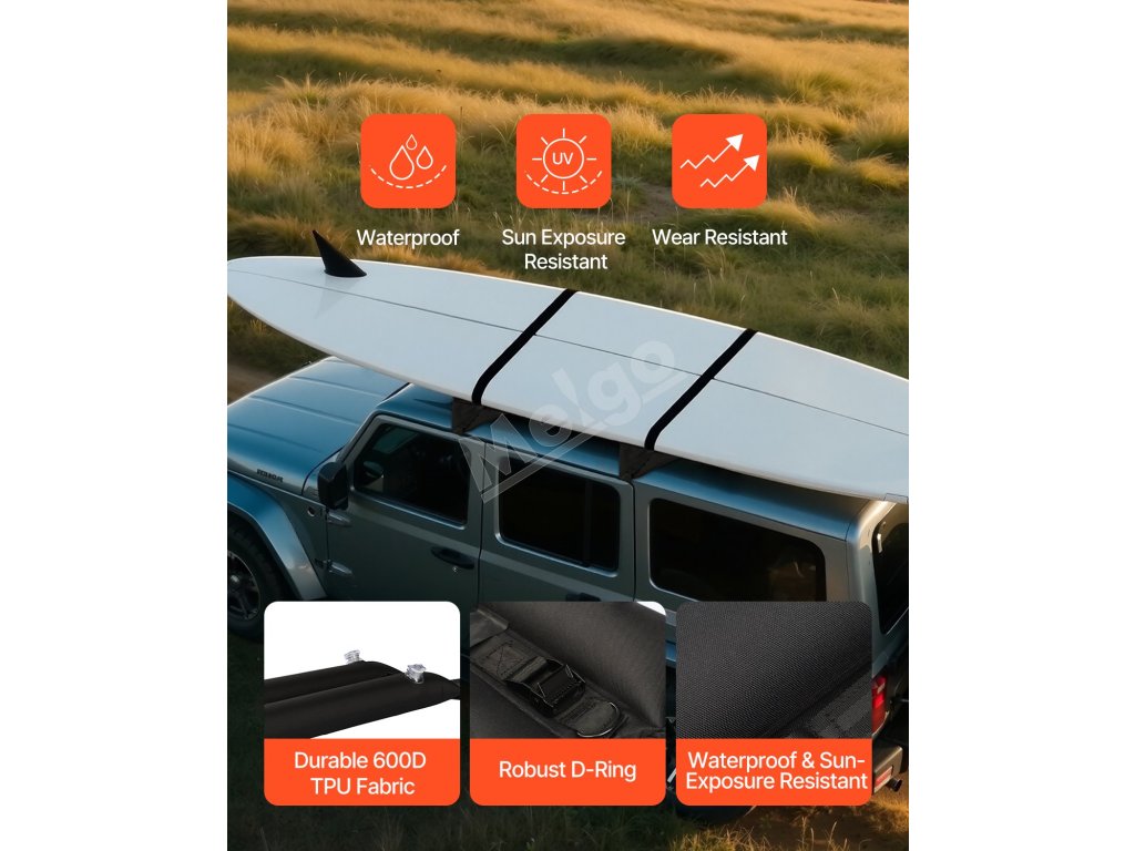 Vytvorte si na streche auta ďalší úložný priestor a bezpečne prepravujte kajaky, surfovacie dosky, dlhé dosky, pádla, snowboardy, kanoe a ďalšie outdoorové vybavenie s ľahkosťou. Naša súprava mäkkých nosičov je vhodná na rôzne aktivity a každodenné skladovanie.