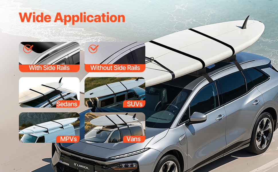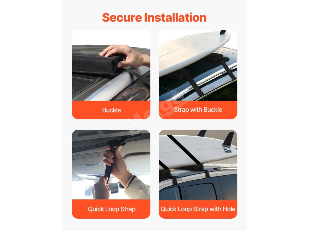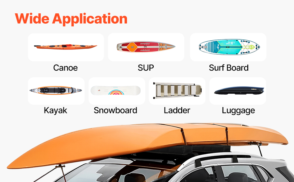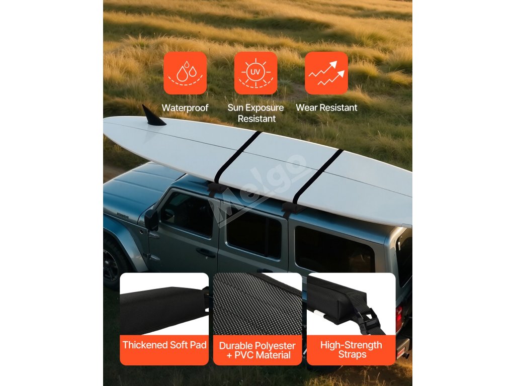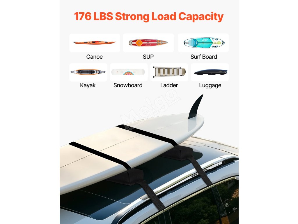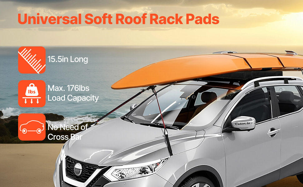 Vytvorte si dodatočný úložný priestor na streche auta a bezpečne prepravujte kajaky, surfy, dlhé dosky, pádla, snowboardy, kanoe a ďalšie outdoorové vybavenie s ľahkosťou. Naša súprava mäkkých nosičov je vhodná na rôzne aktivity a každodenné skladovanie.