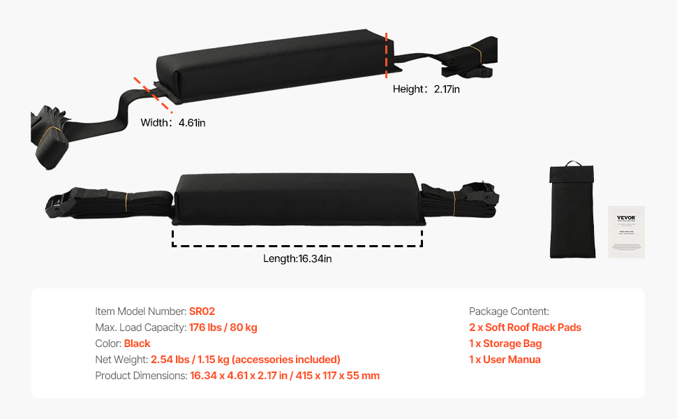 Ochranné podložky na strešný nosič 15.5-inch, 176LBS nosnosť s taškou