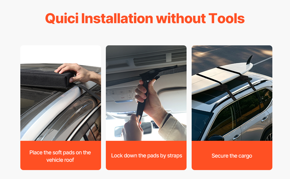 Inštalácia je jednoduchá vďaka nastaviteľným popruhom a prackám, ktoré rýchlo upevnia mäkké podložky na strechu vášho vozidla. V priebehu niekoľkých minút môžete mať strešný nosič pripravený, vďaka čomu bude vaša príprava na cestovanie rýchla a efektívna.